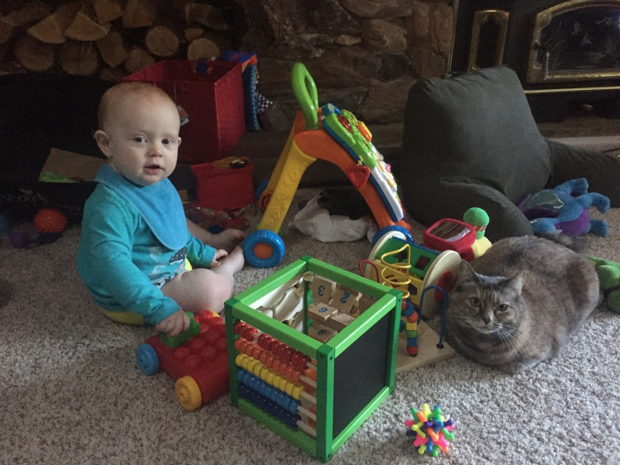 What fun toys you both have to play with… blocks and beads, and each other, too!