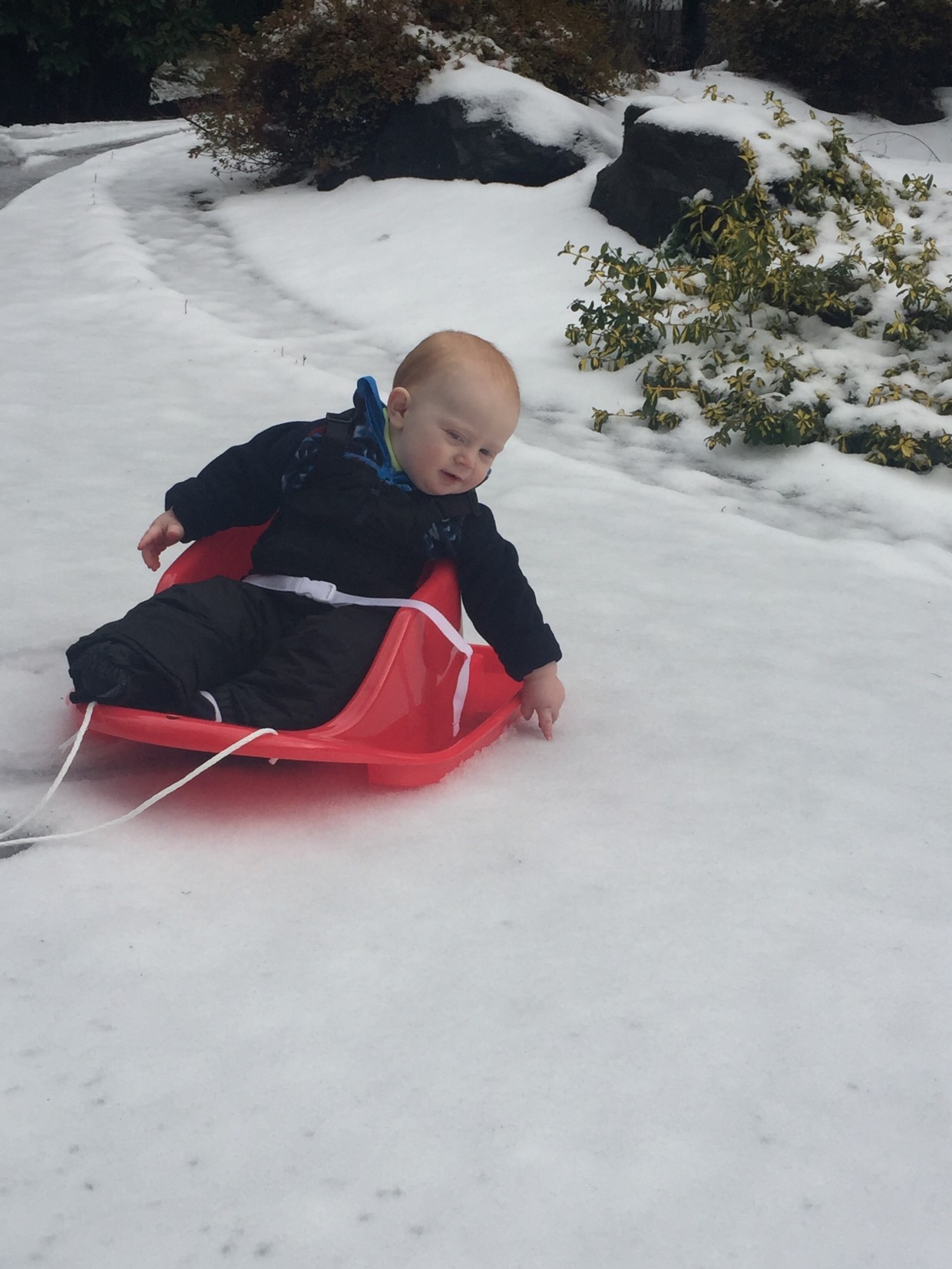 What wonderful fun that you had snow today! I hope you liked it if Mommy pulled you down the hill a little bit and you could feel the sled sliding along without any wheels!