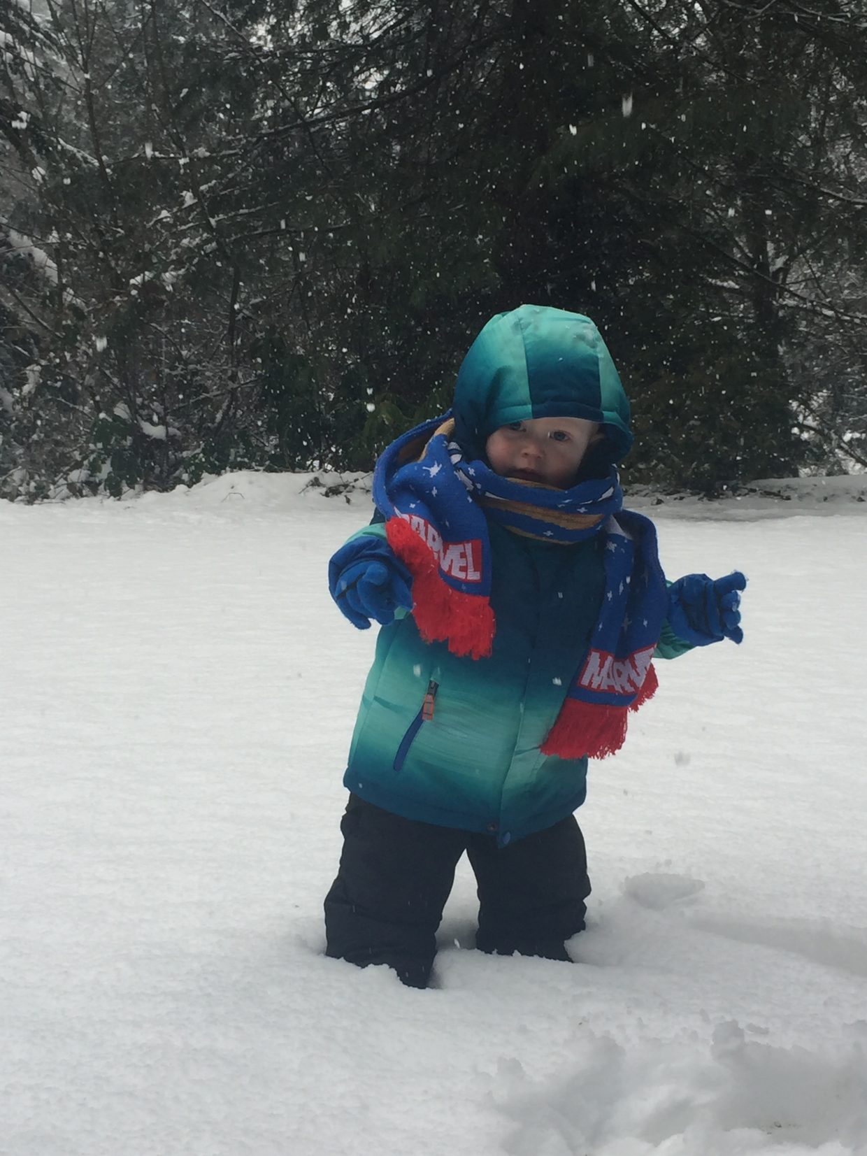 Snow! OH MY! what happened to your yard????? I love your snowsuit! It will be more fun when you can RUN in it. Wondering if you learned how to make snowballs yet????