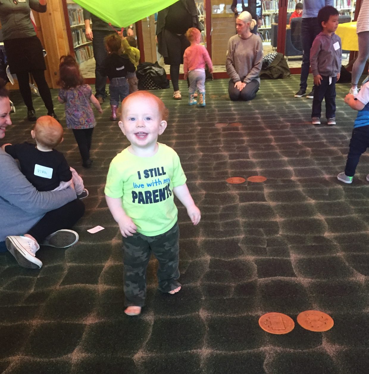 Under the parachute at storytime!