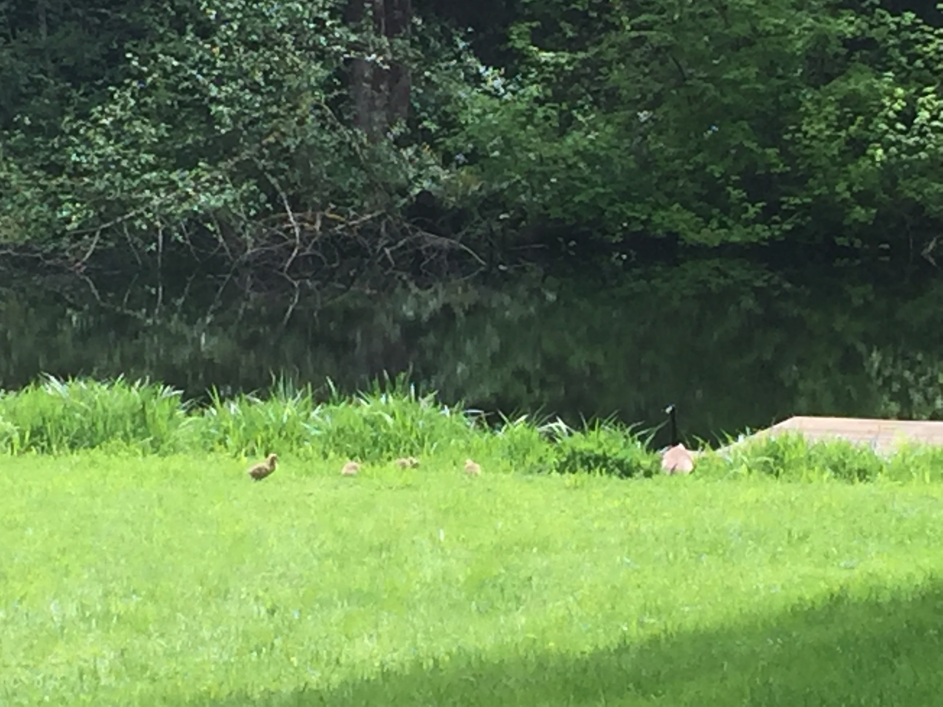 and so close!! When I went to Calvin & Susie’s for dog food today, there was a hen and her little bitty chicks…. but that is not as exciting as geeselings in your very own yard on Daddy’s Birthday!!!!