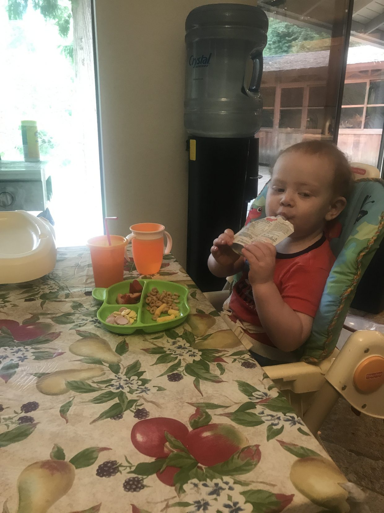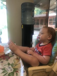 Mom tried sitting me at the table without my tray…