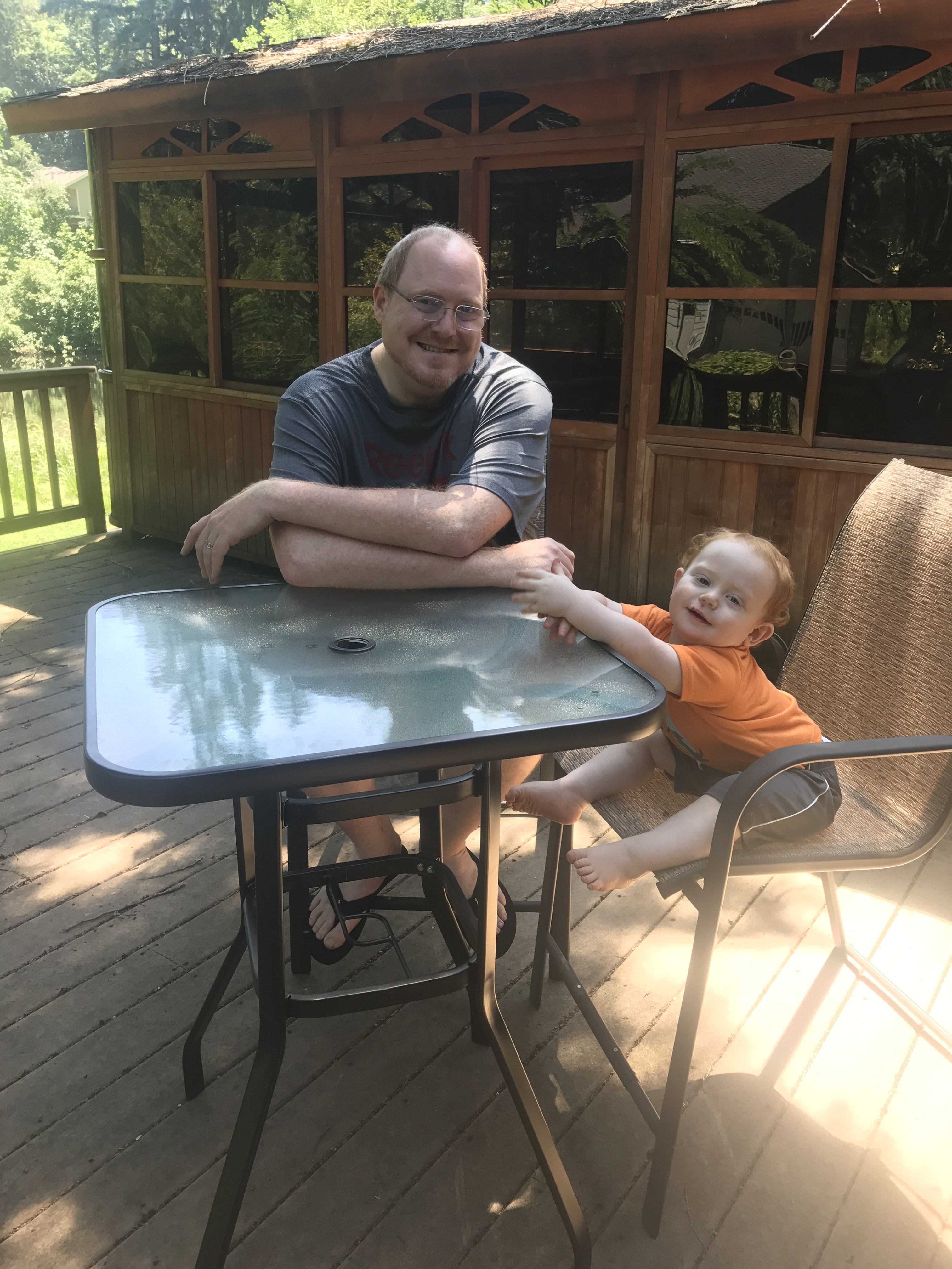 You two did a great job putting that table together! I hope that Grandpa and I can come up sometime this summer to see it . . . and feed the birds and squirrels again! You do a great job feeding them, too, Finn!