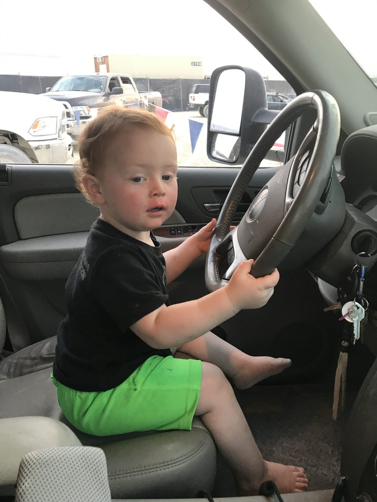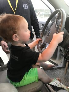 That’s an improvement for sure! Out of the laundry basket and into the big TRUCK! Keep steering……….