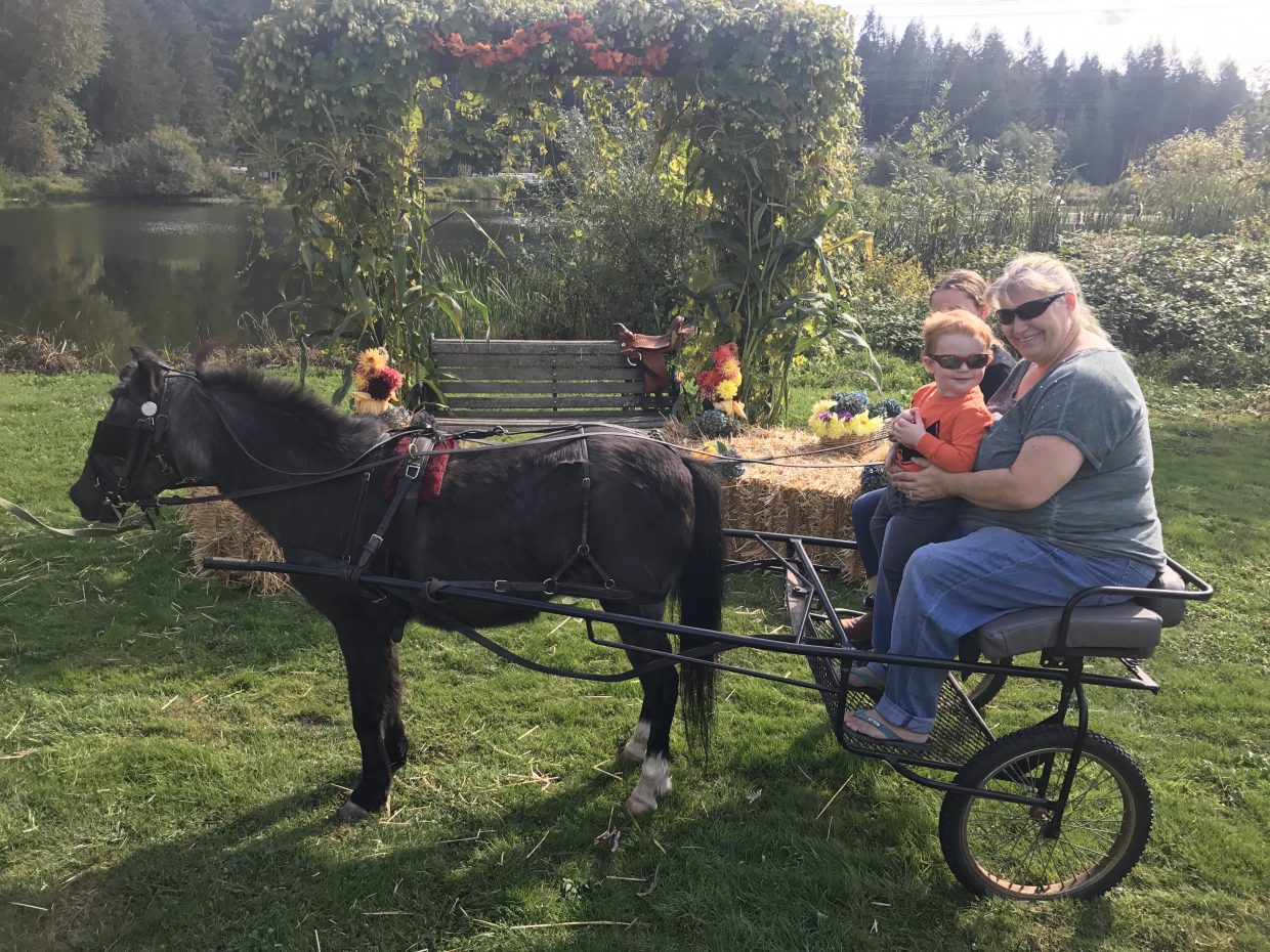 Today was our community Fall festival and we got to go for a ride behind a pony!