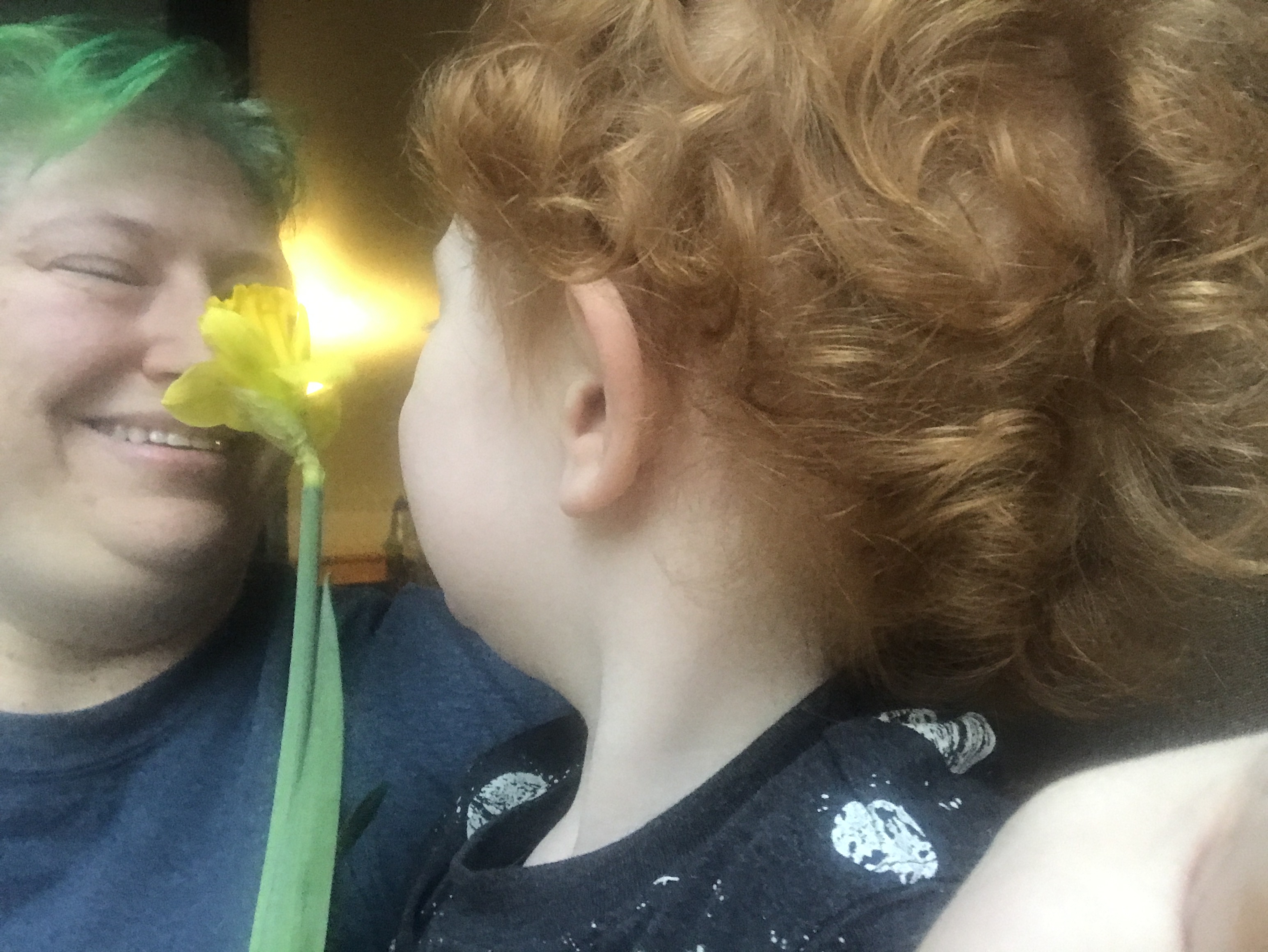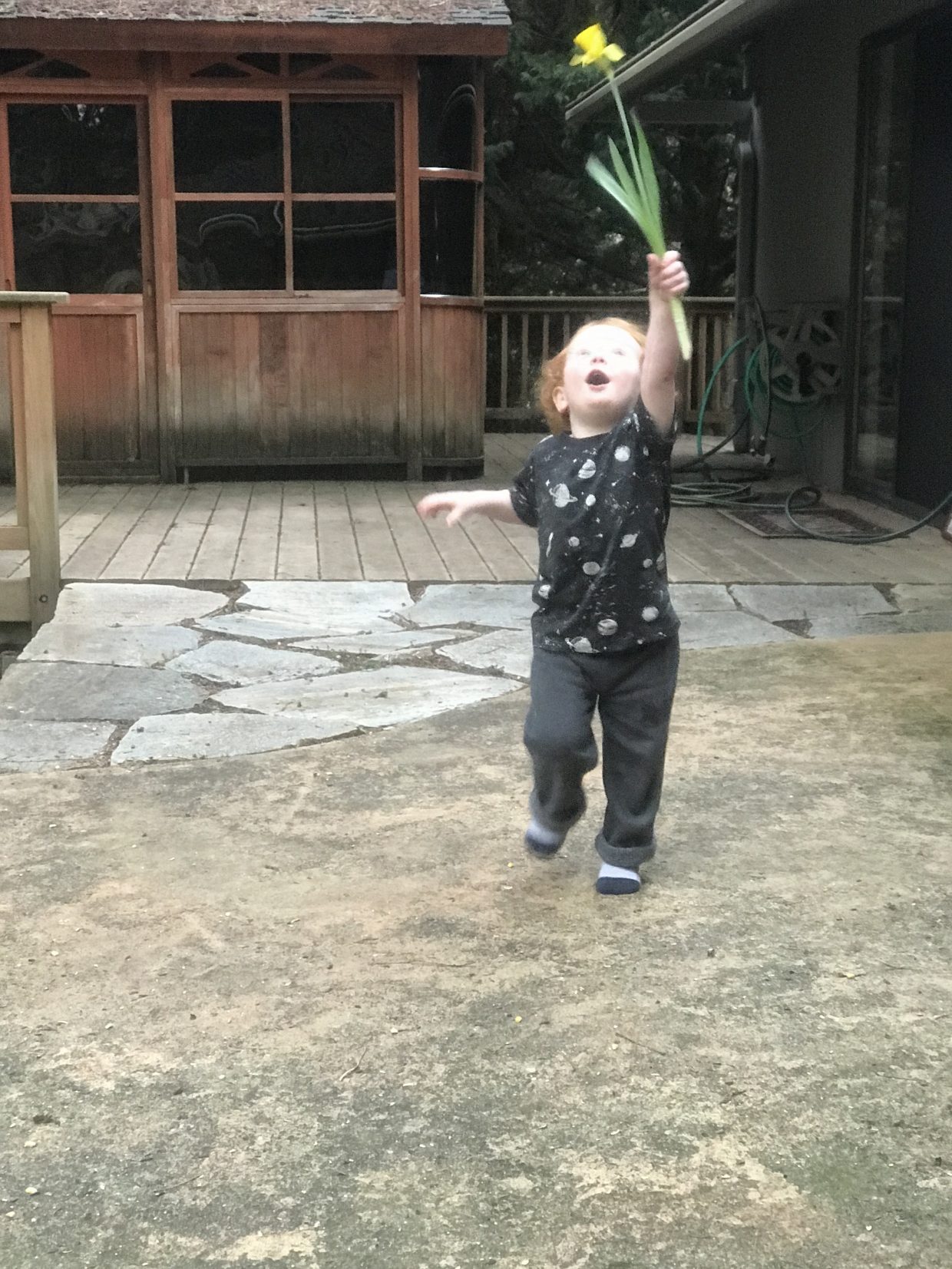 and a VERY happy Mommy receiving the daffodil! What could be nicer than a happy child, a happy mom…. and a daffodil? Hmm, maybe a happy Daddy with two daffodils???