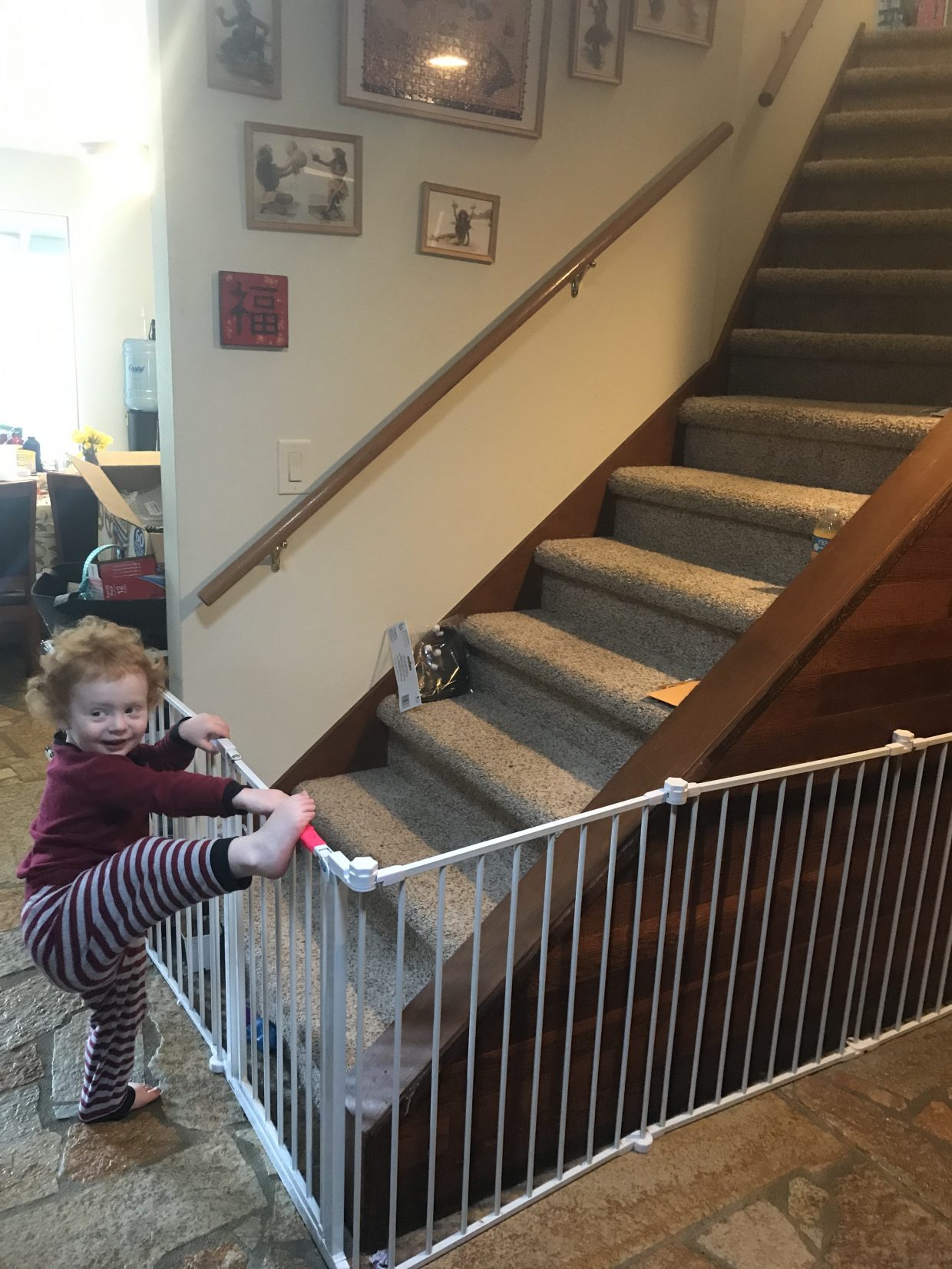 In life, there are always places you can’t go– for your own good. Mom & Dad decide where those places are and a wise boy says “well, ok, I can wait till the fence comes down” because if you don’t, you might come down the stairs on your head like Humpty Dumpty….. and you only have cows on your street— no King’s horses and King’s men to put you together again”!!