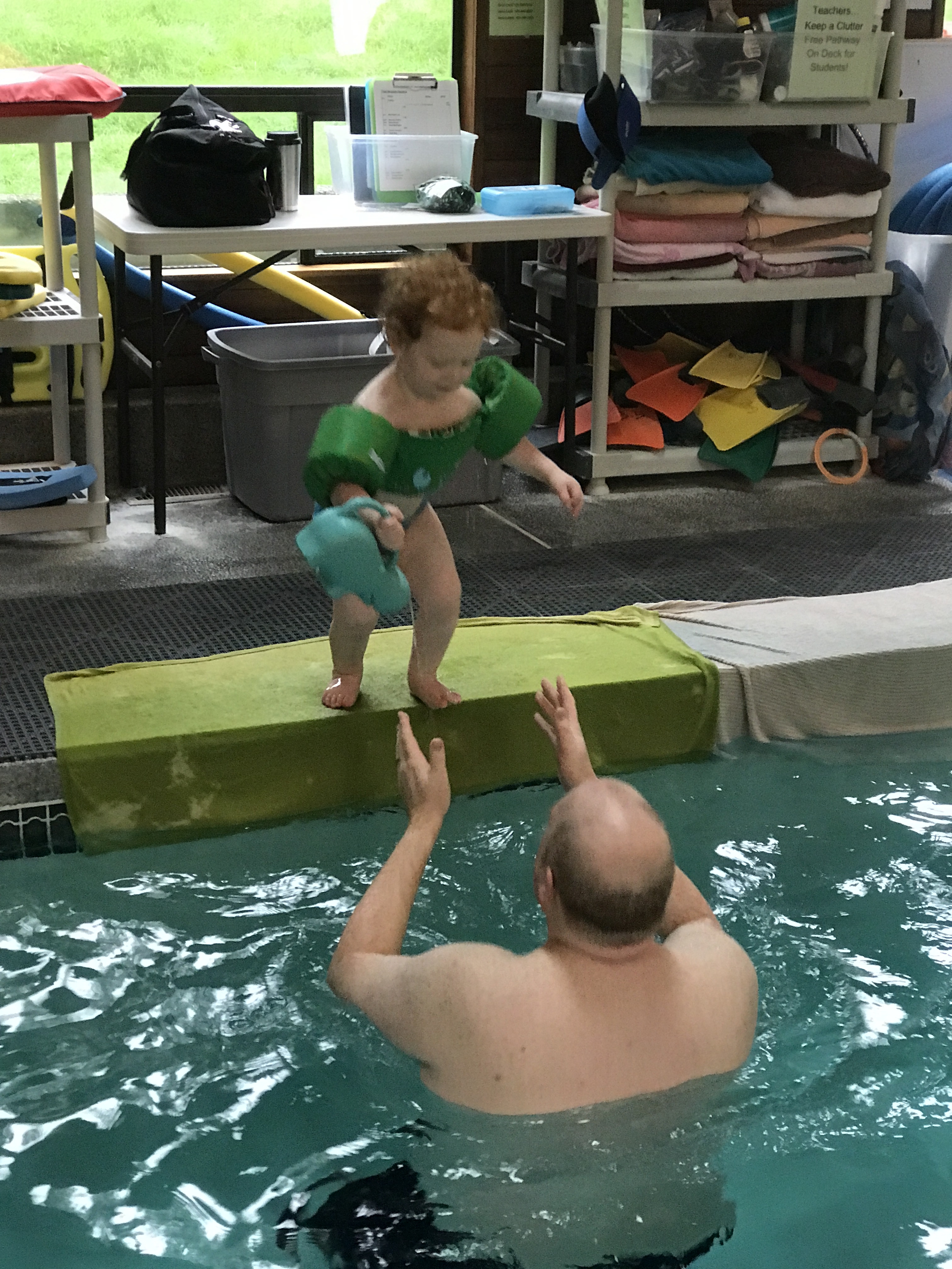 What fun! … swimming with Daddy on your 29-months-old-day!