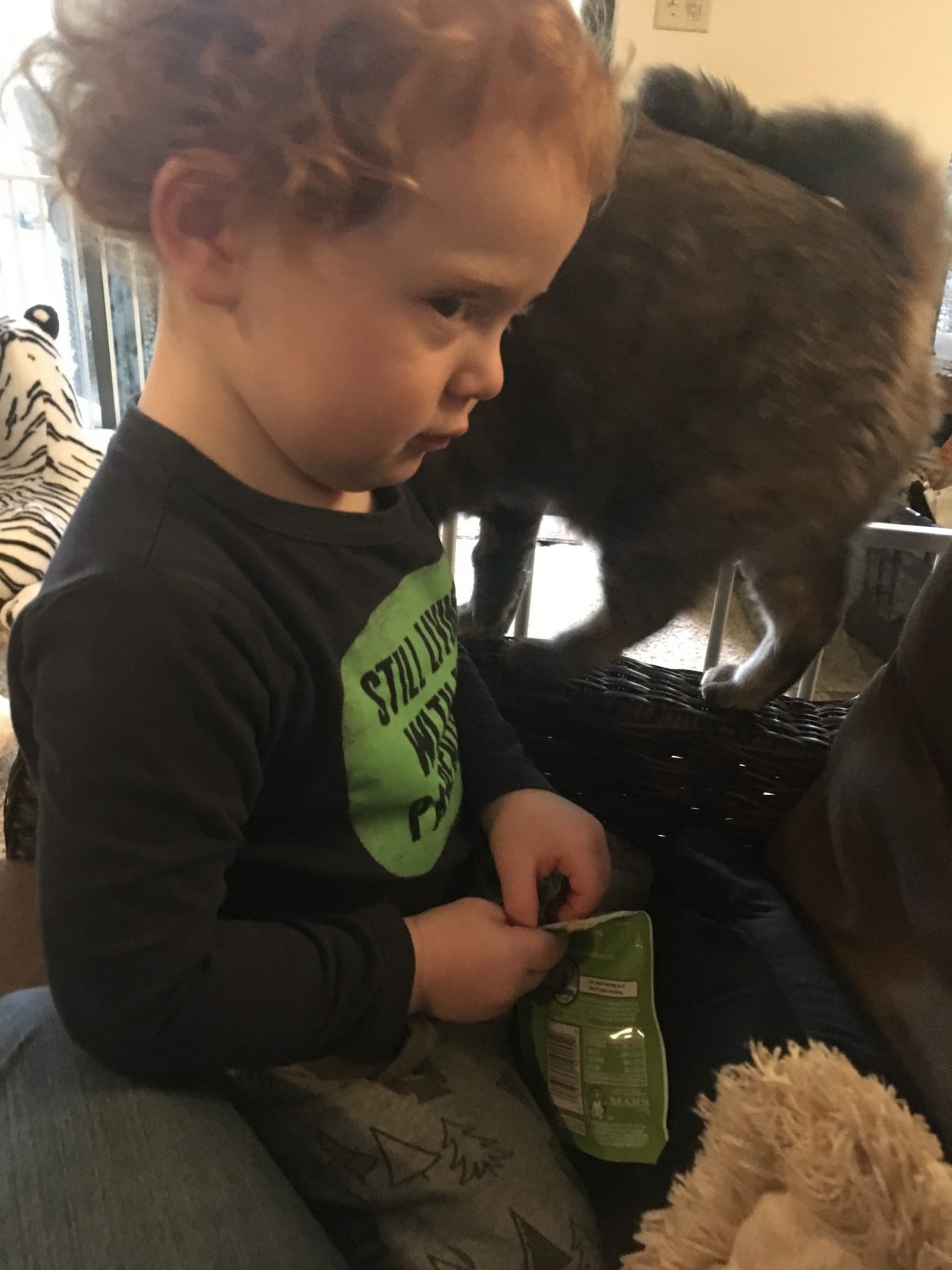 We can see how much the kitty loves you, especially when you are giving her treats! I’ll bet she loves you just as much when you play with her, too!