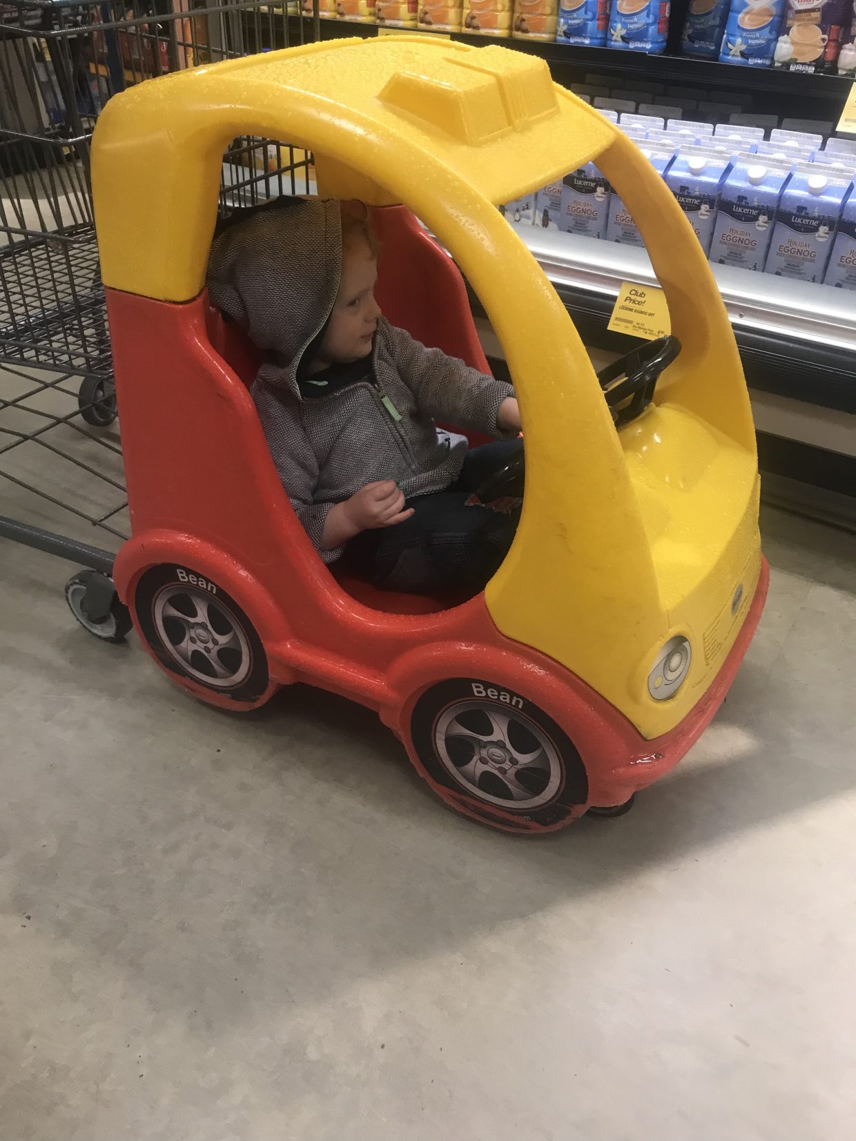 That beats sitting in the cart……. or does it? You can’t reach up high enough to add things to the basket!!! But it looks pretty cool tho!!