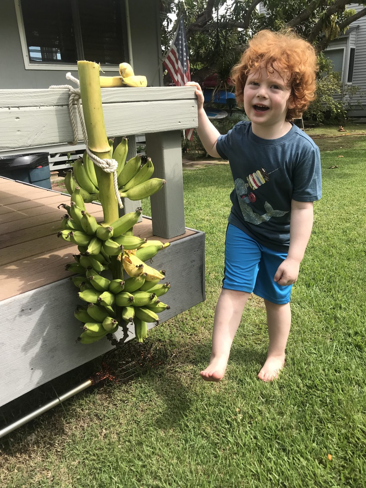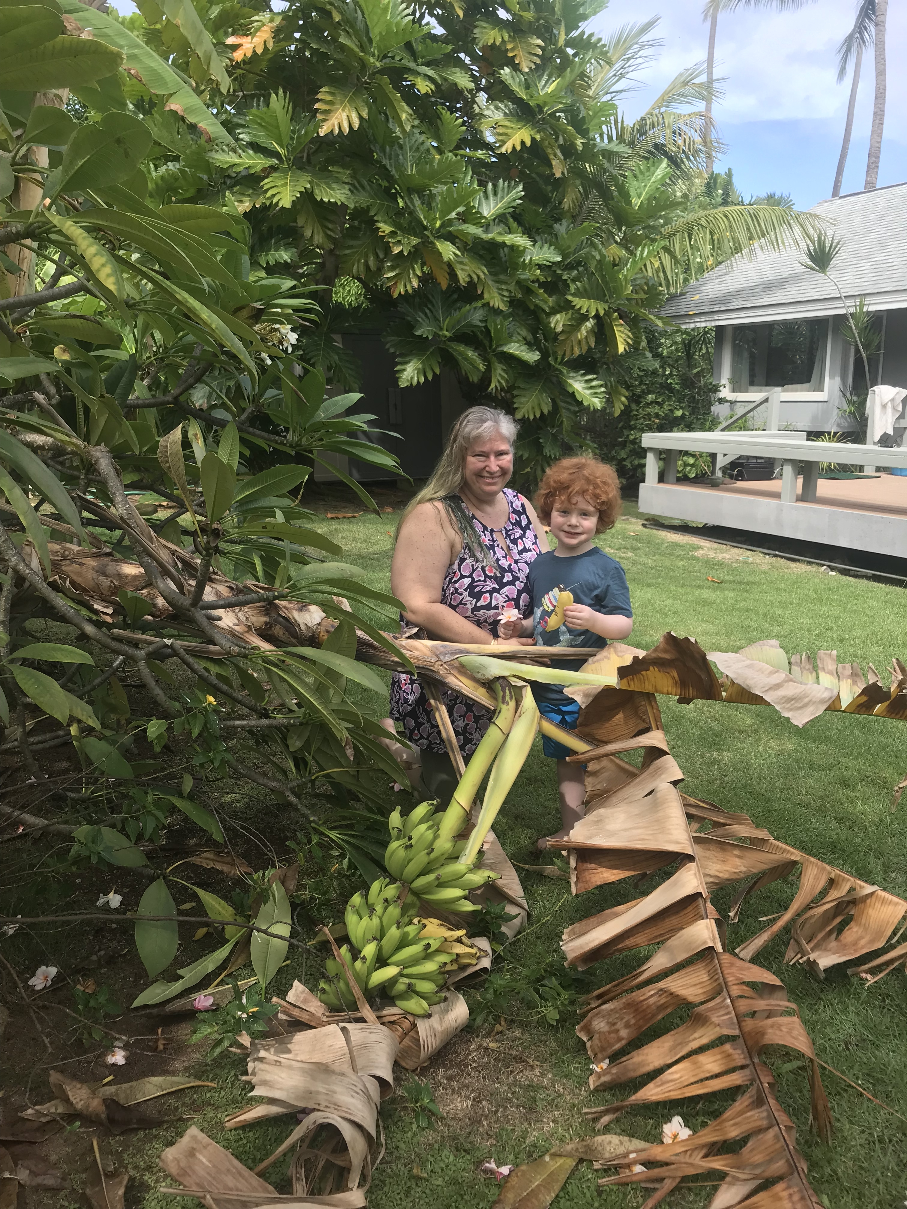 We cut down the tree and everything! (Ok, mostly D-Dad) But now we can reach the bananas easier!