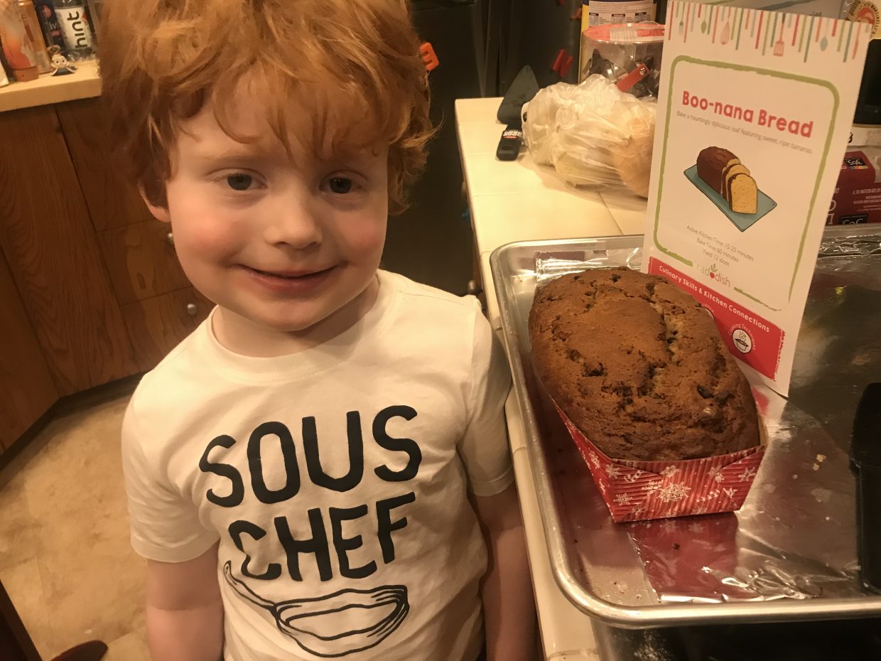And no need to wait for Halloween for this yummy chocolate chip banana bread! You just have to wait for the oven!