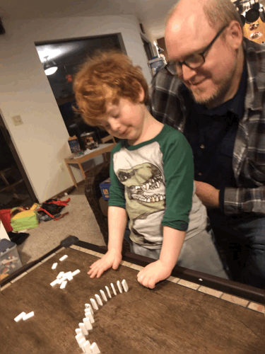Isn’t that fun!!! you and D-Dad can make it as big as you have Dominos for…. think what you could do with another box or two???