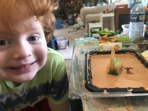 Actually, my Mom says it’s a “non-Newtonian fluid” called “oobleck.” It’s really neat. Sometimes it’s like a liquid and sometimes like a solid. If the dinosaurs try to run really fast across it, they can. But if they go slow, then they sink and get stuck!