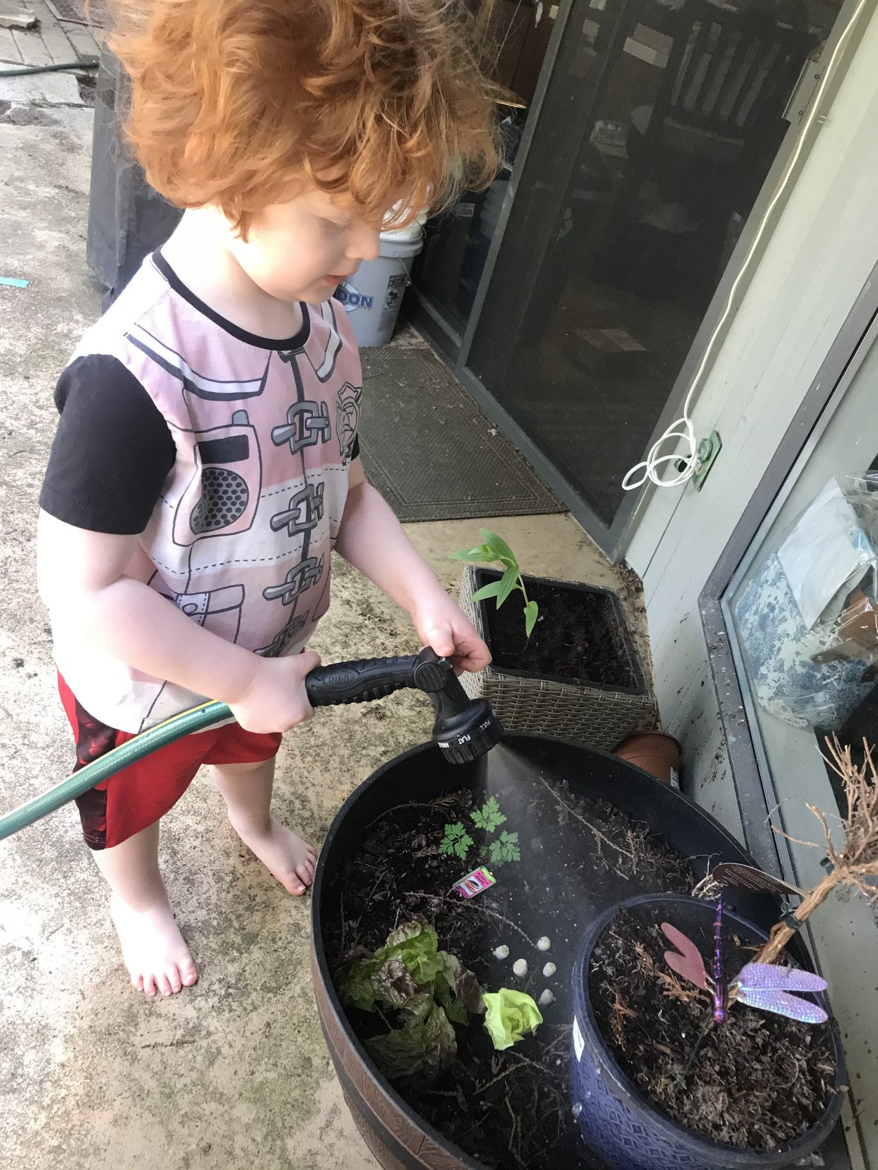 She says we’re going to start planting real stuff soon, but in the meantime this is odds and ends from our produce! Waste not, want not! I’m not sure what that means yet, but I’m sure she’ll tell me later!
