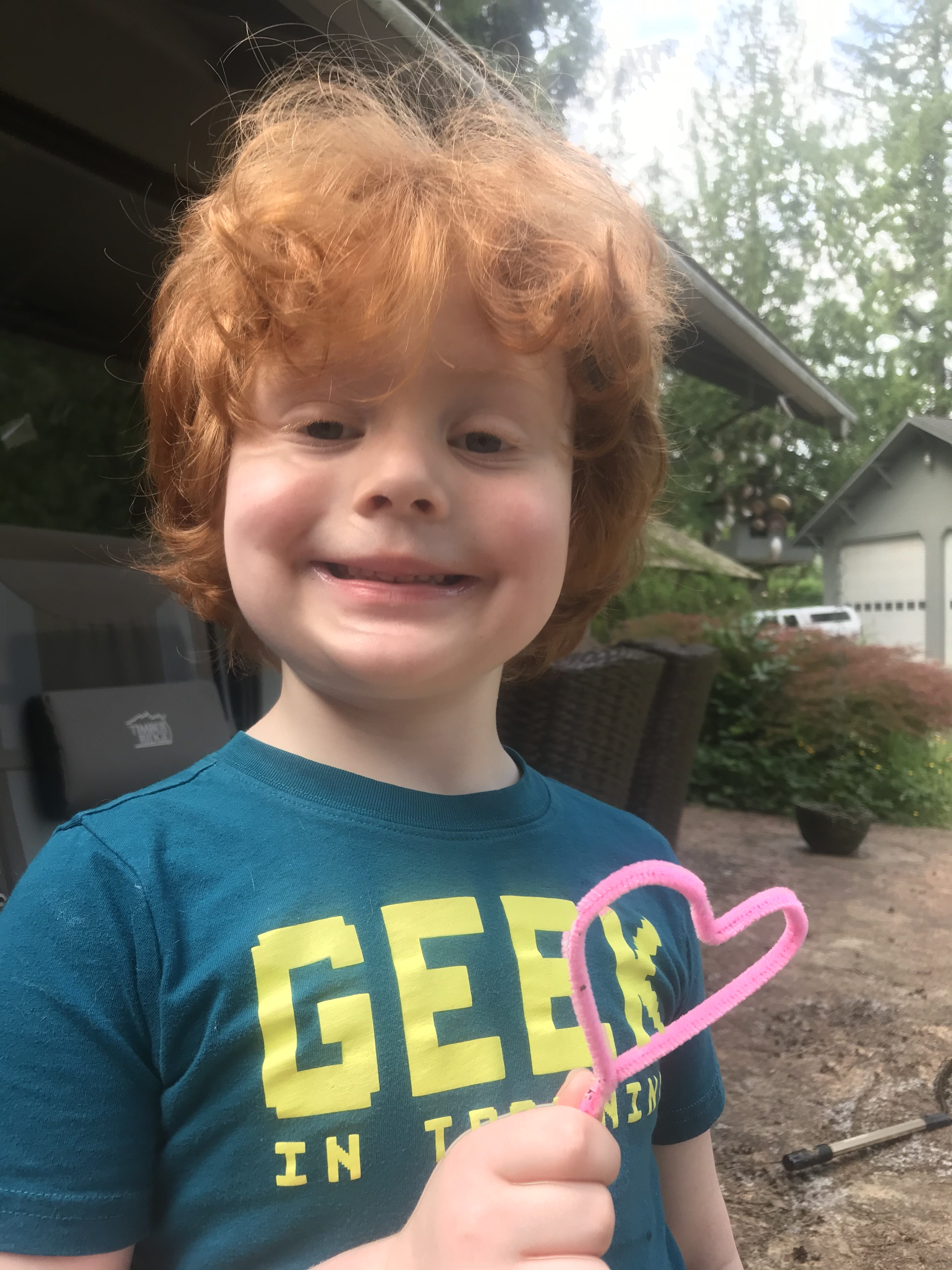 Today in playing with bubbles, I learned that no matter what shape your bubble wand is, it always makes round bubbles.