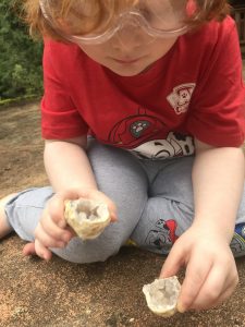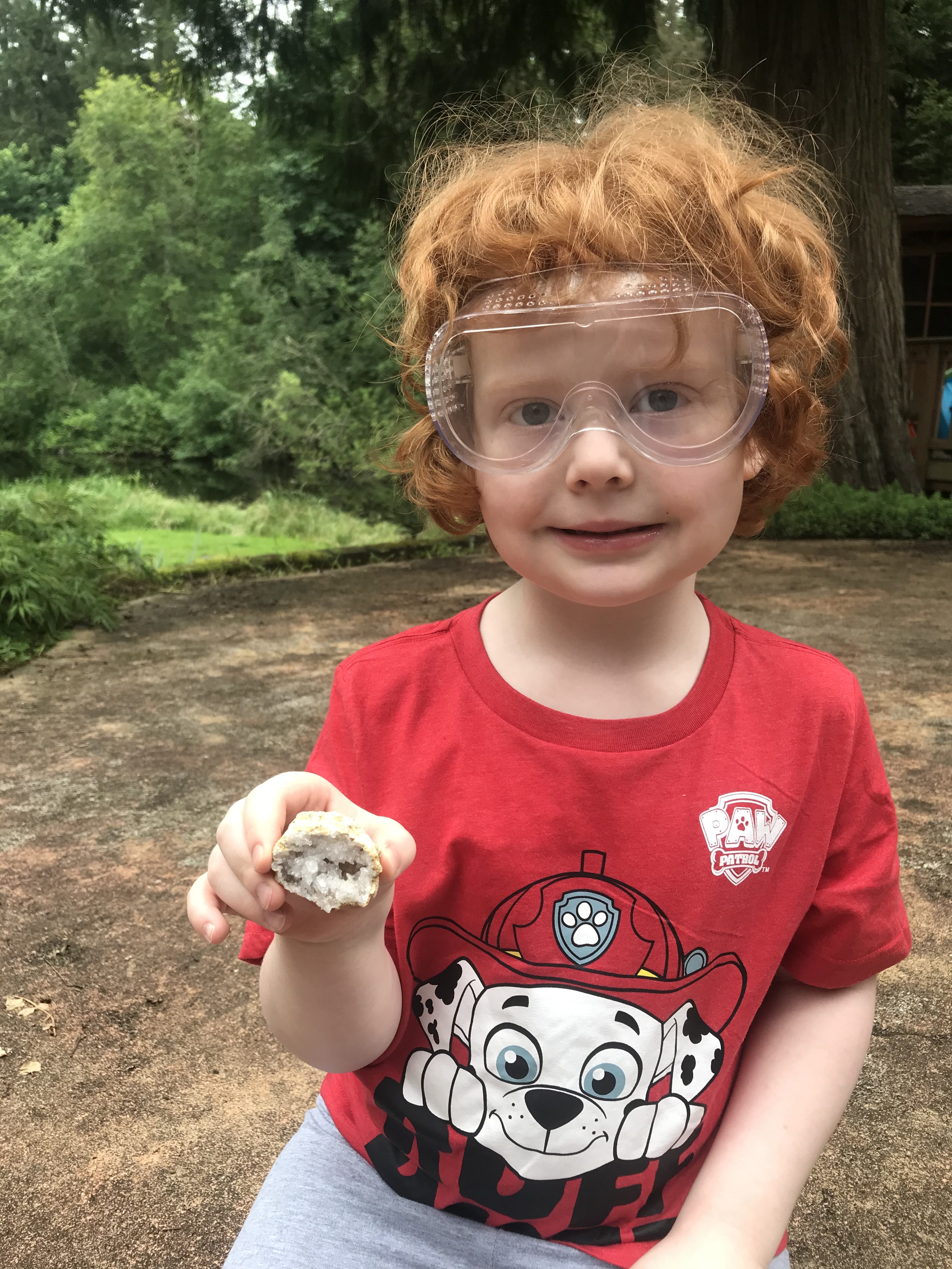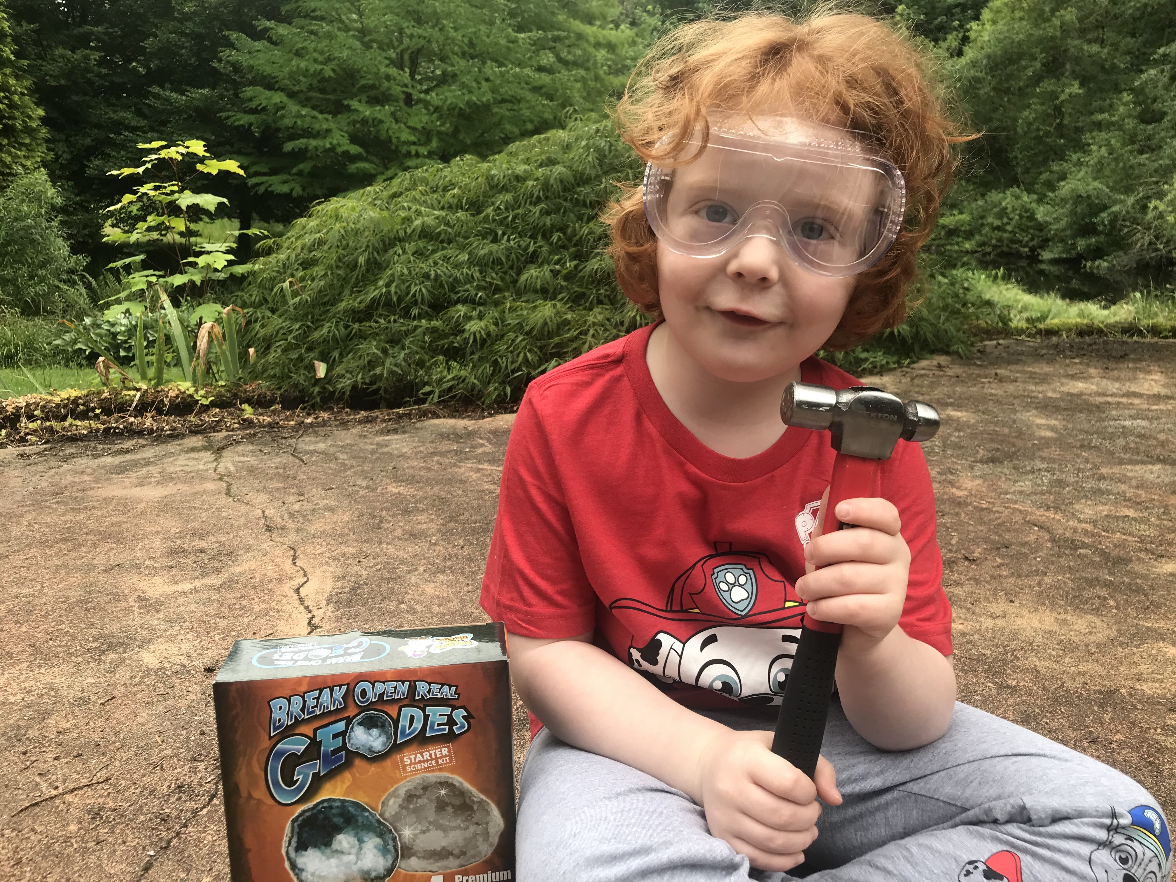 What’s inside my rocks? I have my hammer and goggles! Let’s find out!