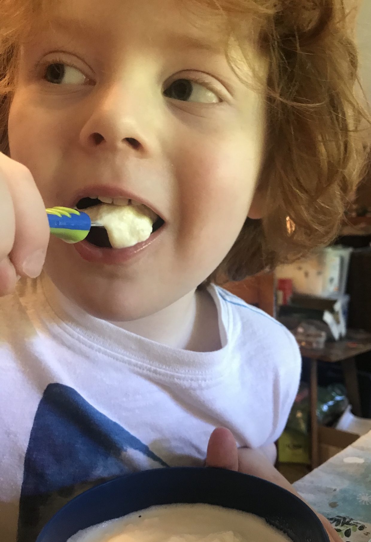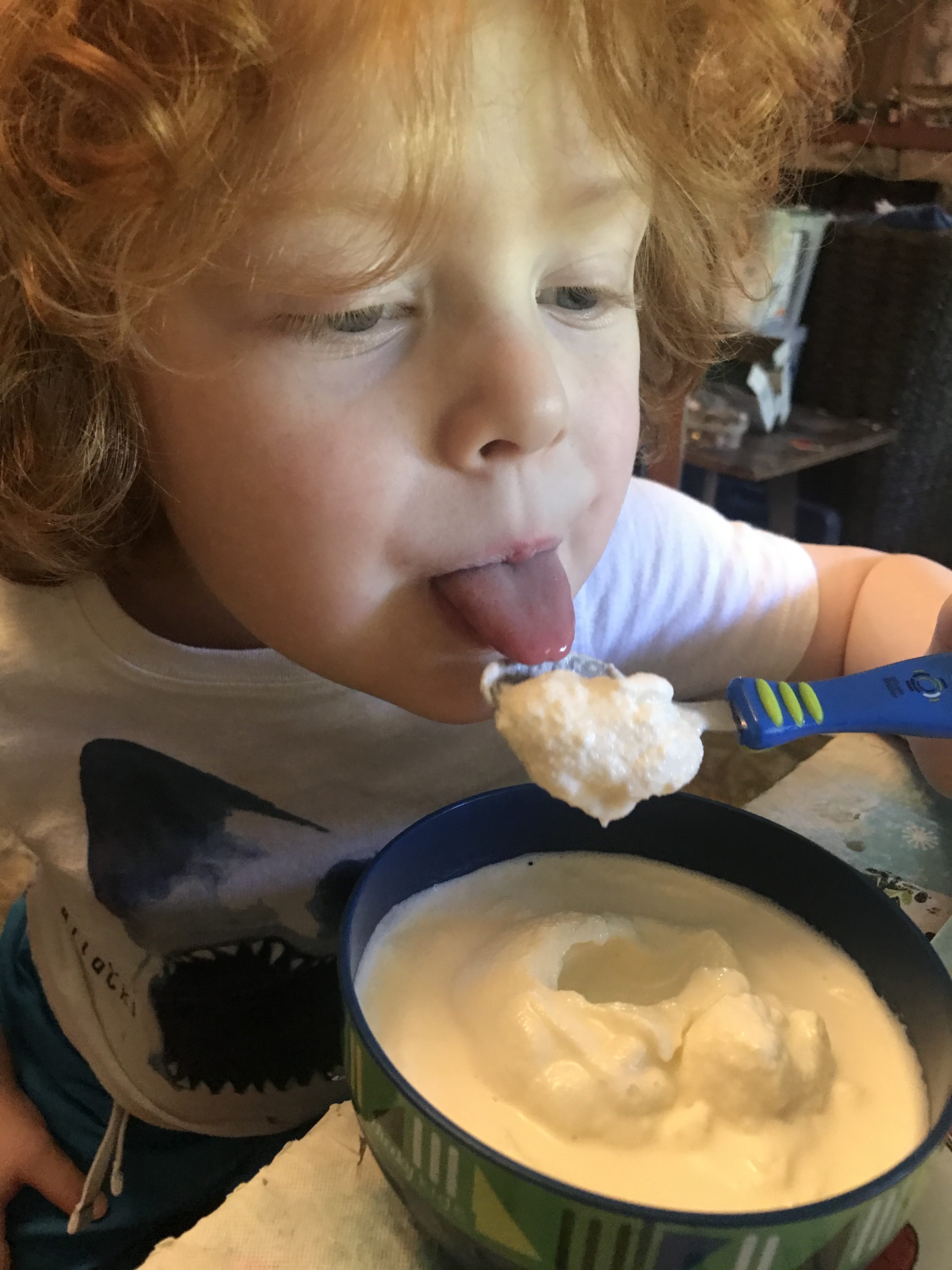 So, of course we had to make some! Poured all the ingredients into a bag, put it in a bigger bag of ice, and shake away!