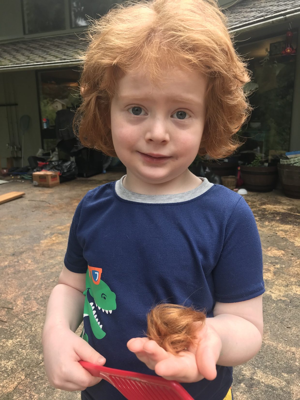 Did you know that almost all mammals have hair? And it doesn’t hurt at all to cut it, because it’s “dead” by the time it leaves your body? And it comes in a bunch of different colors, but that red hair is made by a special pigment, different from all the other colors, so it is more rare than the rest? Oh, and Mom’s green and blue aren’t natural colors, but they sure are fun!
