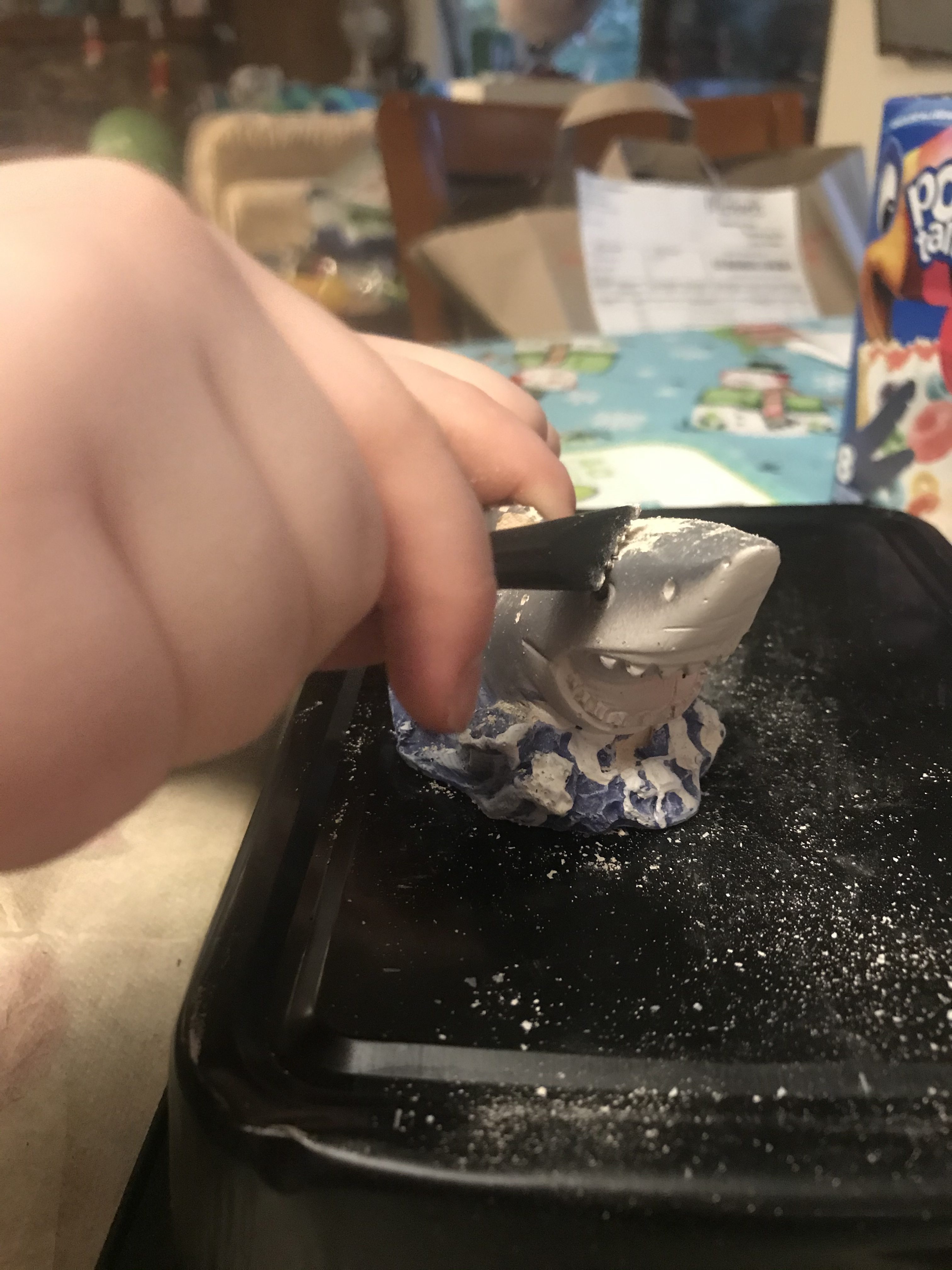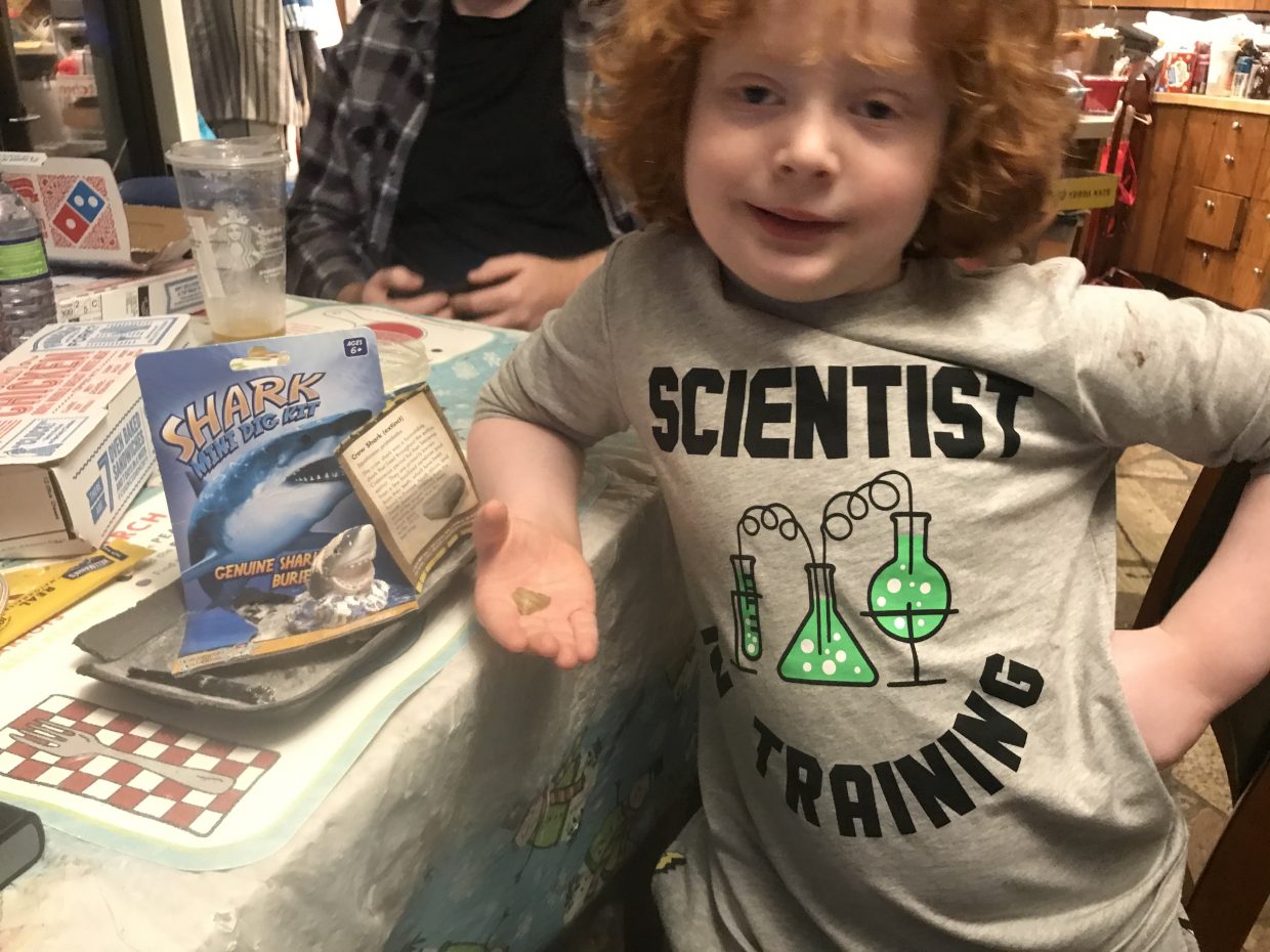 I got to excavate a fossilized Crow Shark tooth! It was most appropriate because Fridays are also Swim Days!