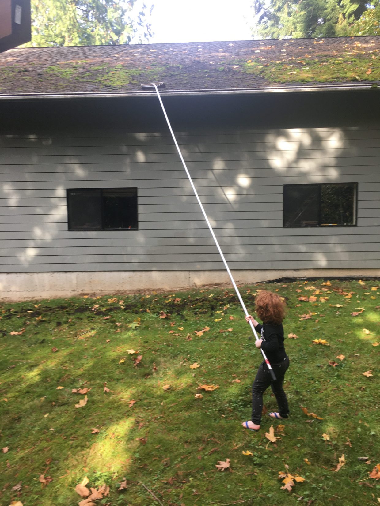 That is a BIG job for the BOTH of you!!! Looks like there is some moss up there too??? I Hope that Mom has some snacks for you when you are finished!!