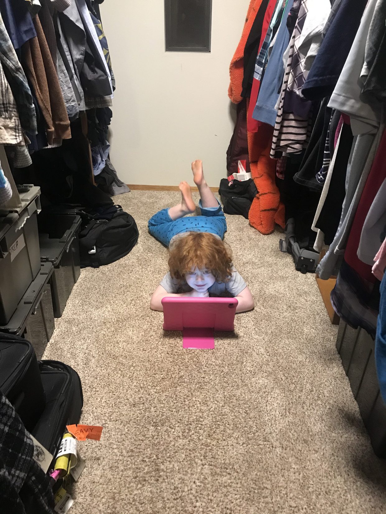 Just watching videos on my newest Vrooom. It’s pink today, to replace my broken blue one, but Mom says there’s a red case coming soon!