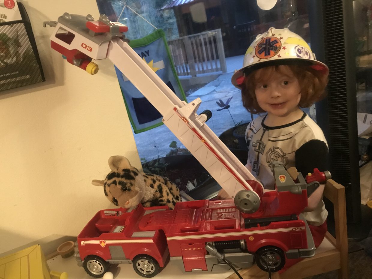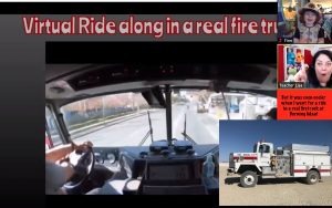 And we practiced running up stairs and things too, including a “virtual ride in a fire truck.” I decided not to show off too much and tell them that I had ridden in a real fire truck on Playa with Uncle Ralph. But I did. And it was super fun! Check last summer in here, the Daily Finn!