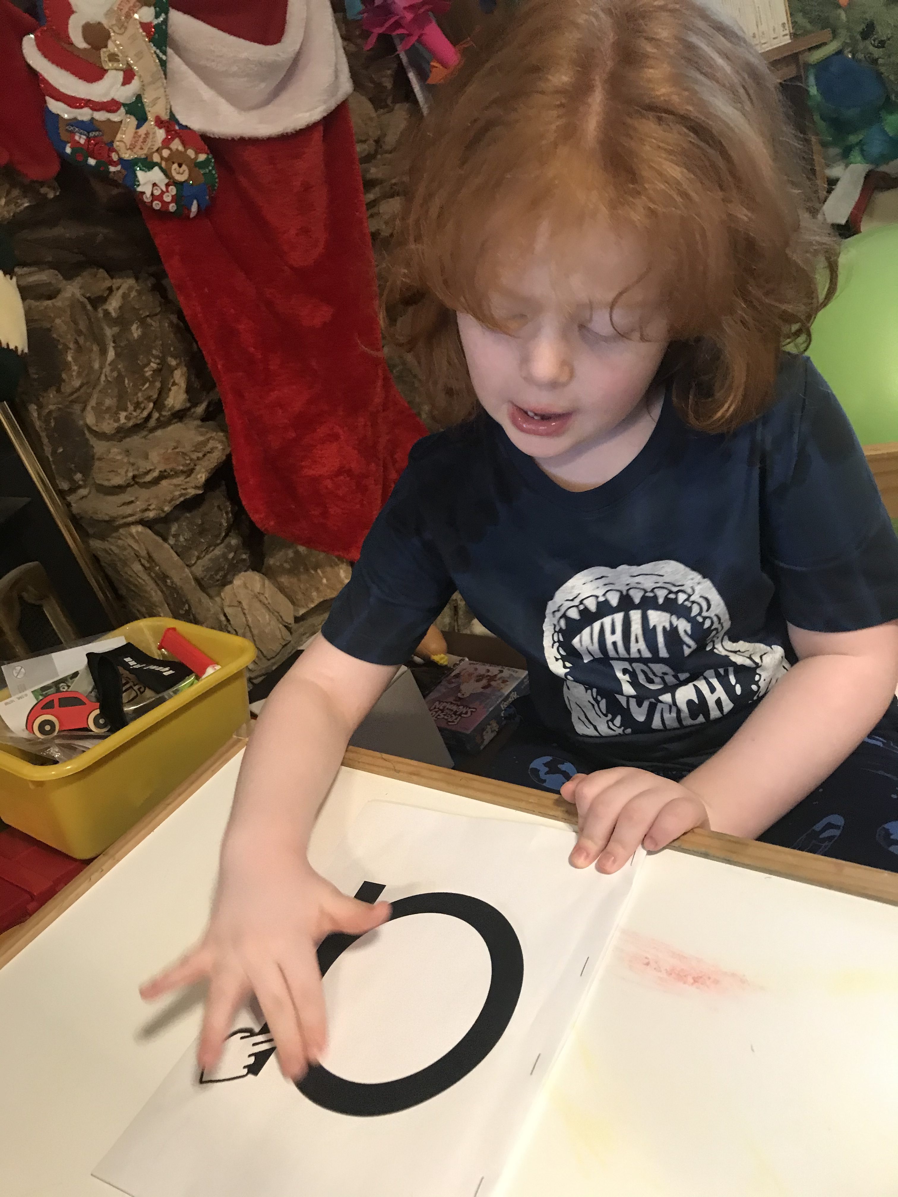 We practiced writing our letters in the air, with our fingers on paper, and then with a pencil on paper. And we played a bunch of games too. I think they thought they were sneaky and teaching us something else, like Astronaut starts with “A”, but I already knew that, so it was just fun for me!