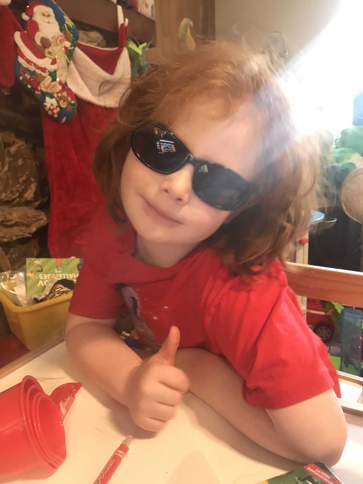 Today was pretty cool, doing a scavenger hunt with Pete the Cat for an early Valentine’s Day party. Can you see him in my glasses (which were one of the items to find)?
