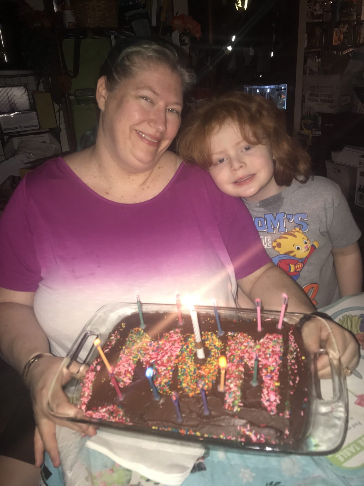 I helped make and decorate the cake! And how cool are the different colors on those candle flames? Plus the one in the middle sings!