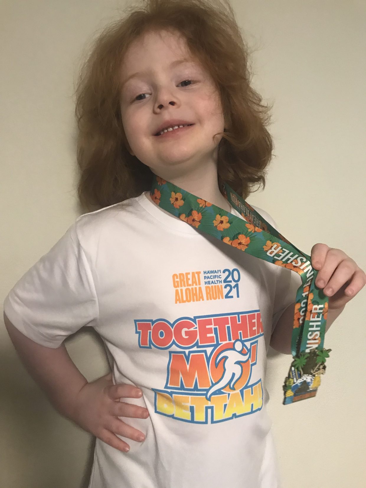Do you remember when Mom and I did the Great Aloha Run virtually? That means we walked around our own neighborhood. Even in the snow!