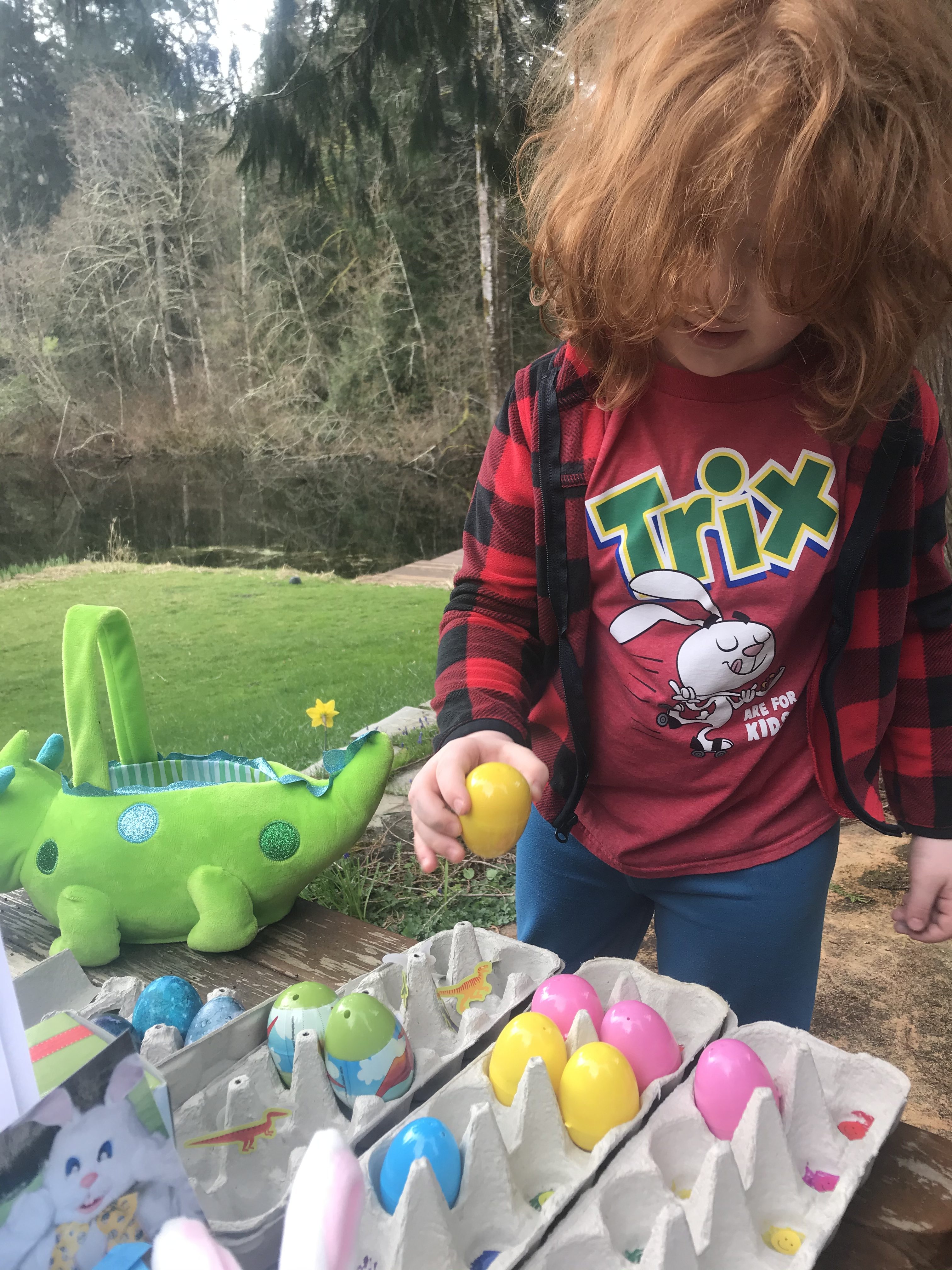 He also left me a note about how many eggs I had to find. There were 42 this year! But he made it easy to keep track by having me sort them while I was collecting!