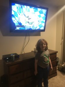 We’ll cut some holes now before we hang up the tv, but we will run the wires at a later time.