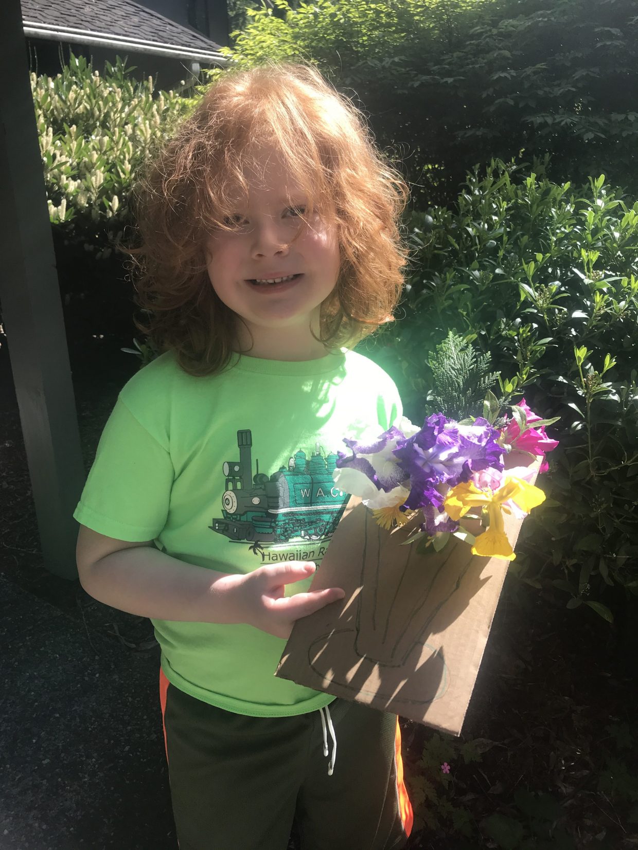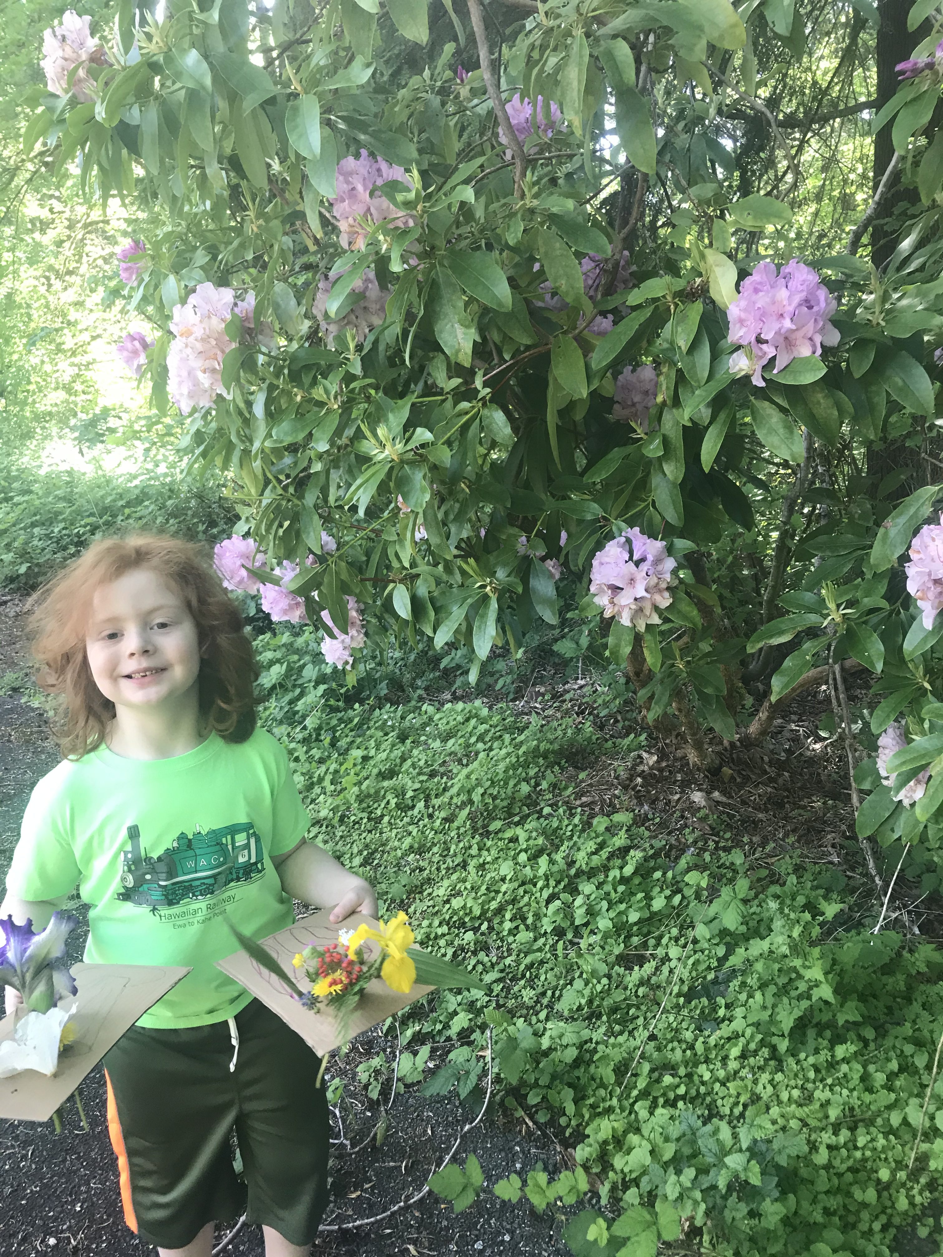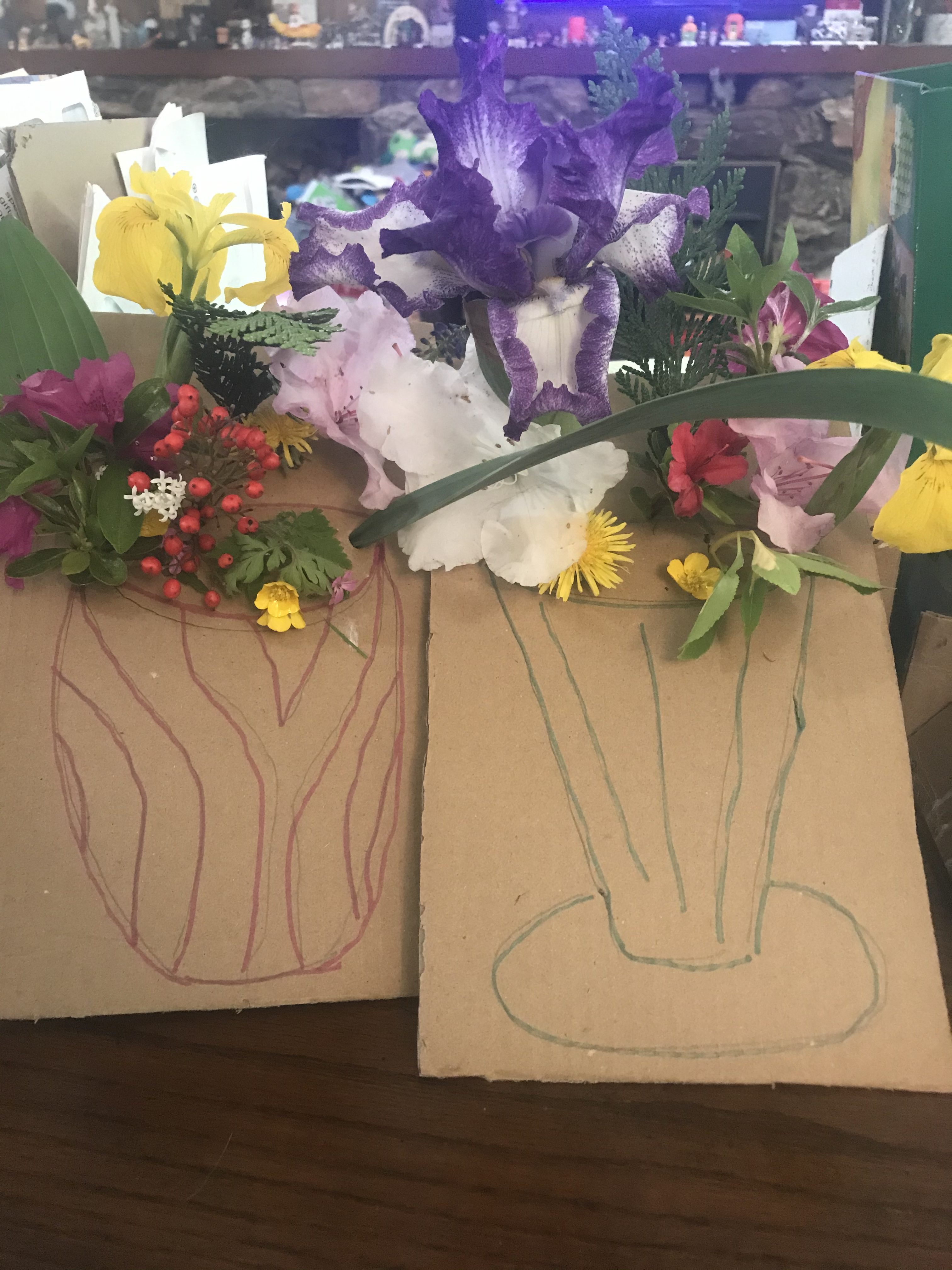 Mom and I went out and filled these “vases” with flowers from our yard!