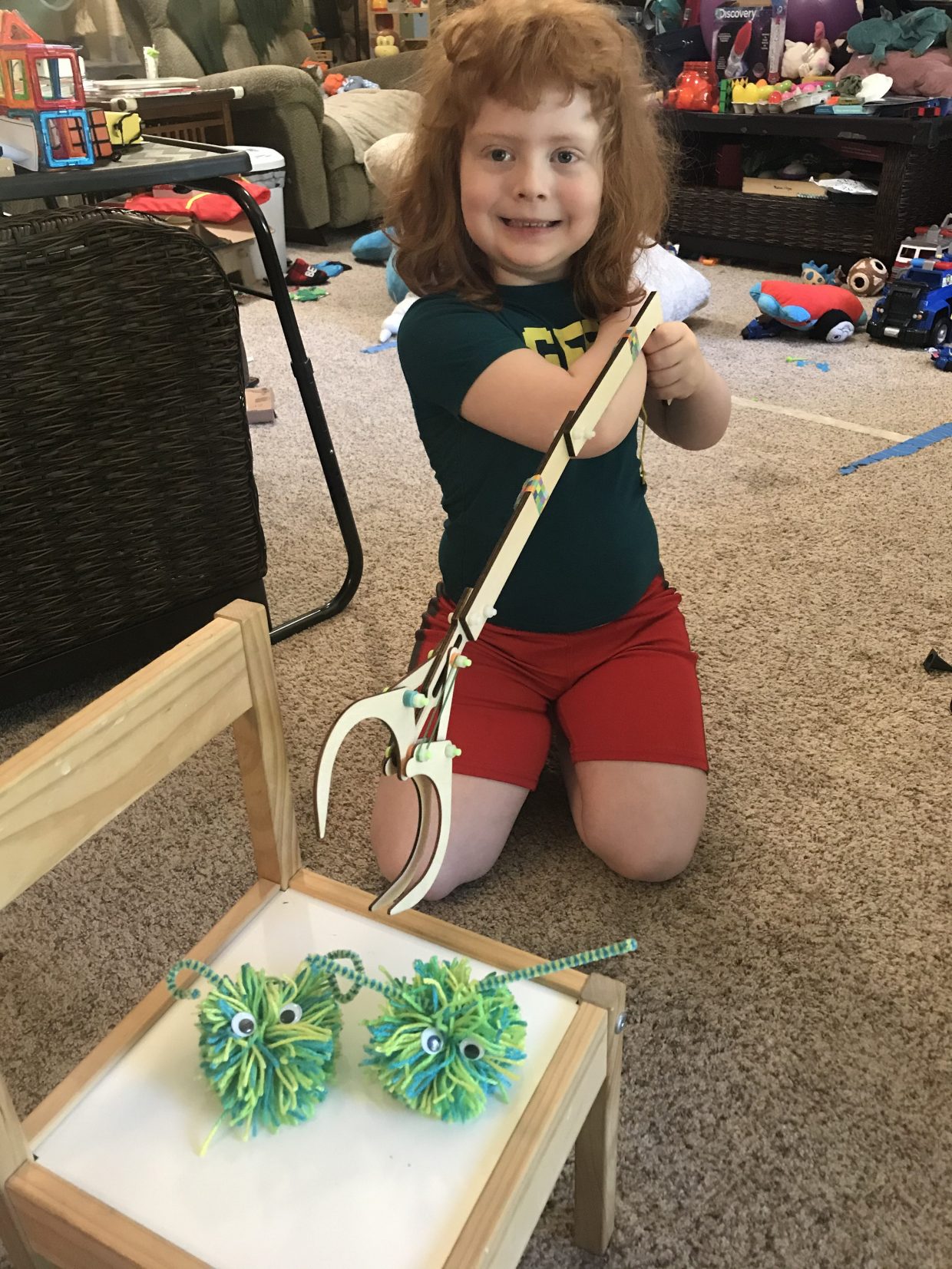 I made this cool grabber thing as part of a Kiwi Arcade kit. And also the cute PomPom guys to grab with it! Plus there were some fun “penny arcade” games