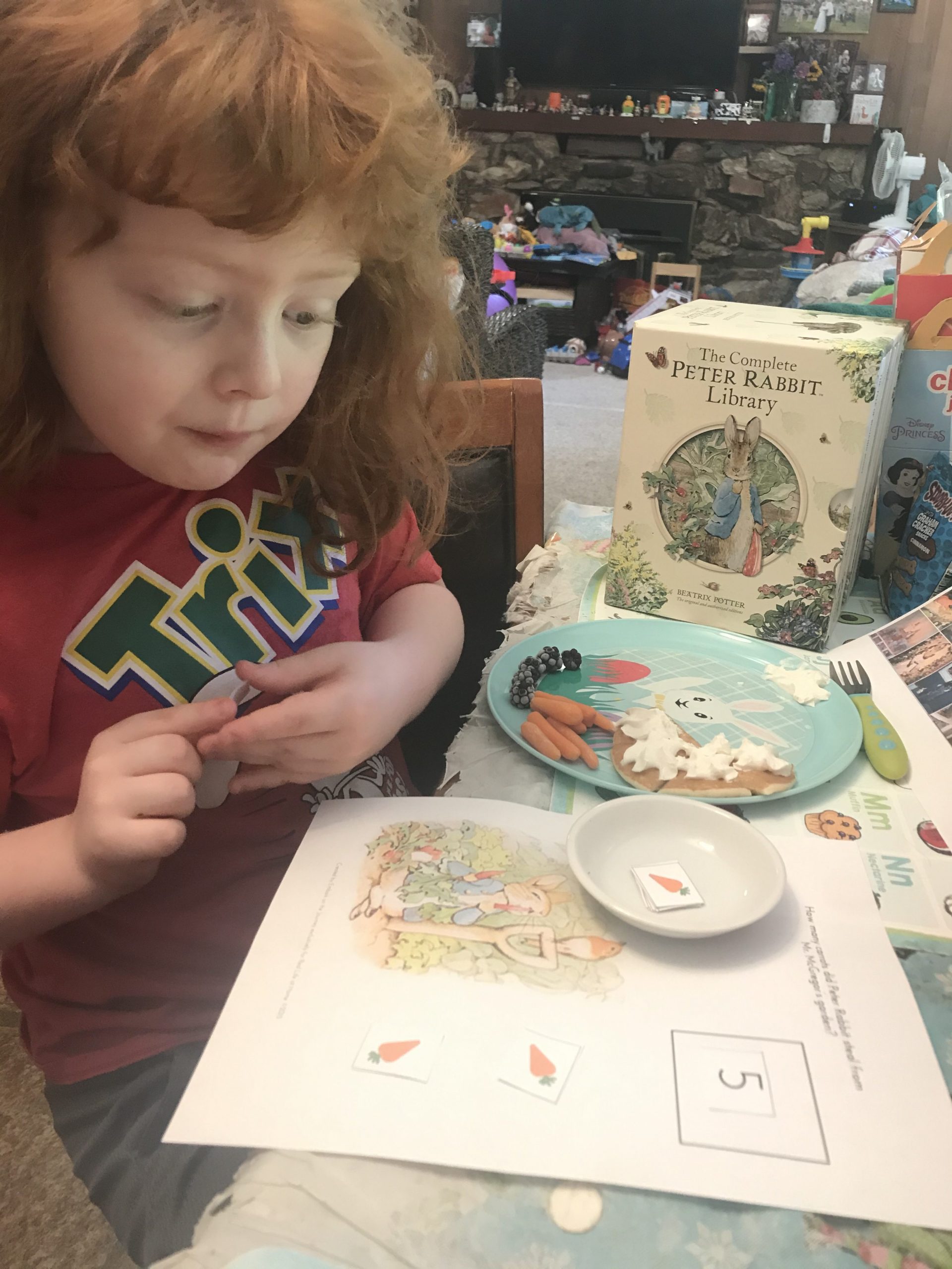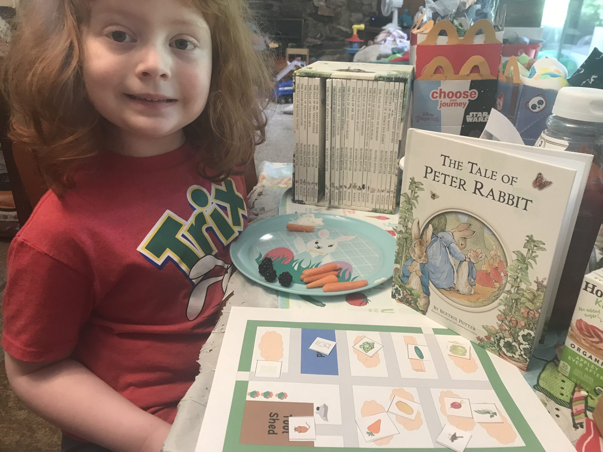 In her honor we made a Peter Rabbit nature board, read a bunch of her stories, did a character word search,