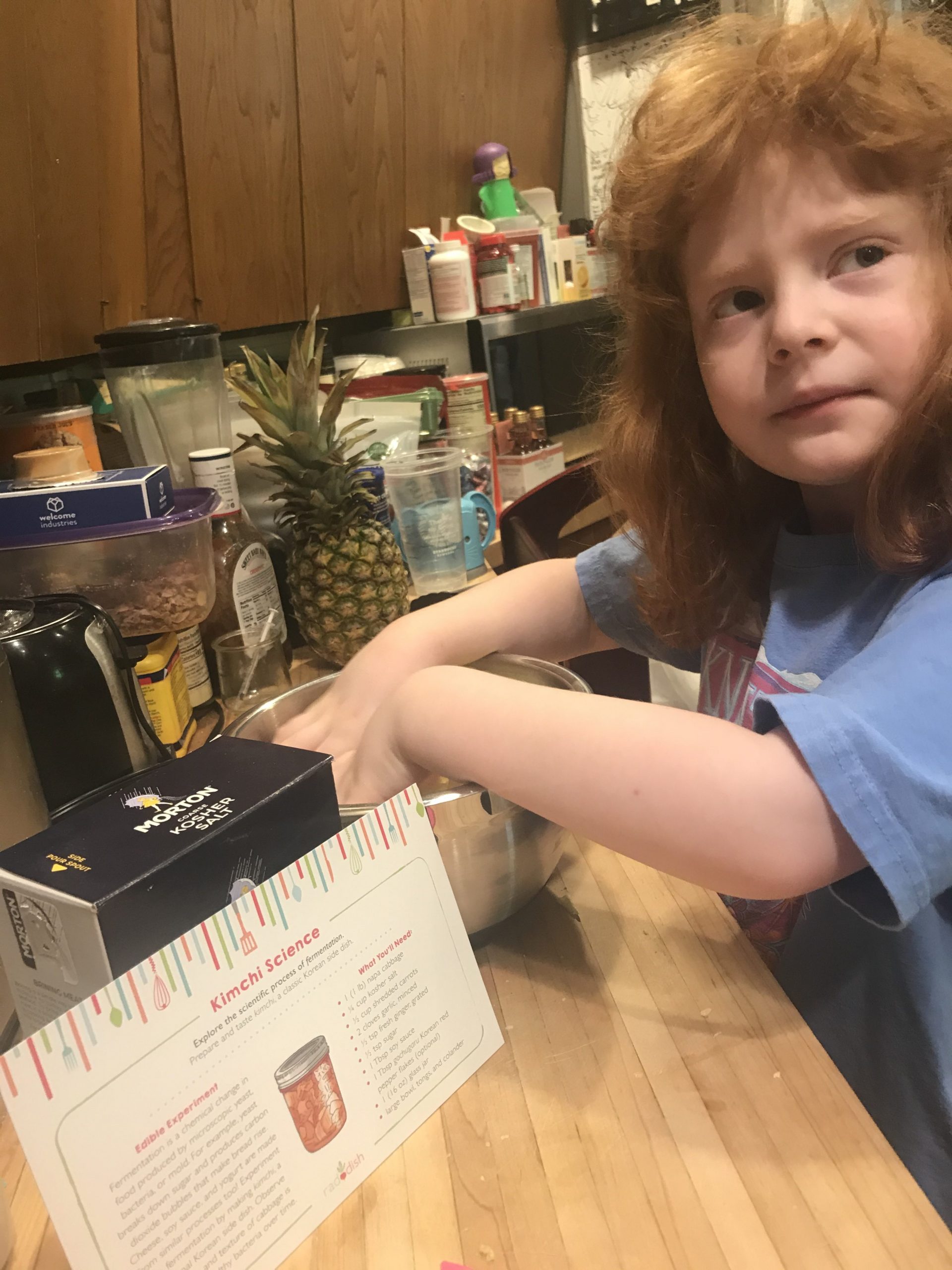 Also, to continue both the bacteria experiments and the Raddish Korea box, we started a batch of Kimchi. I don’t know what that is but Mom says it will probably be pretty smelly in a couple of days!