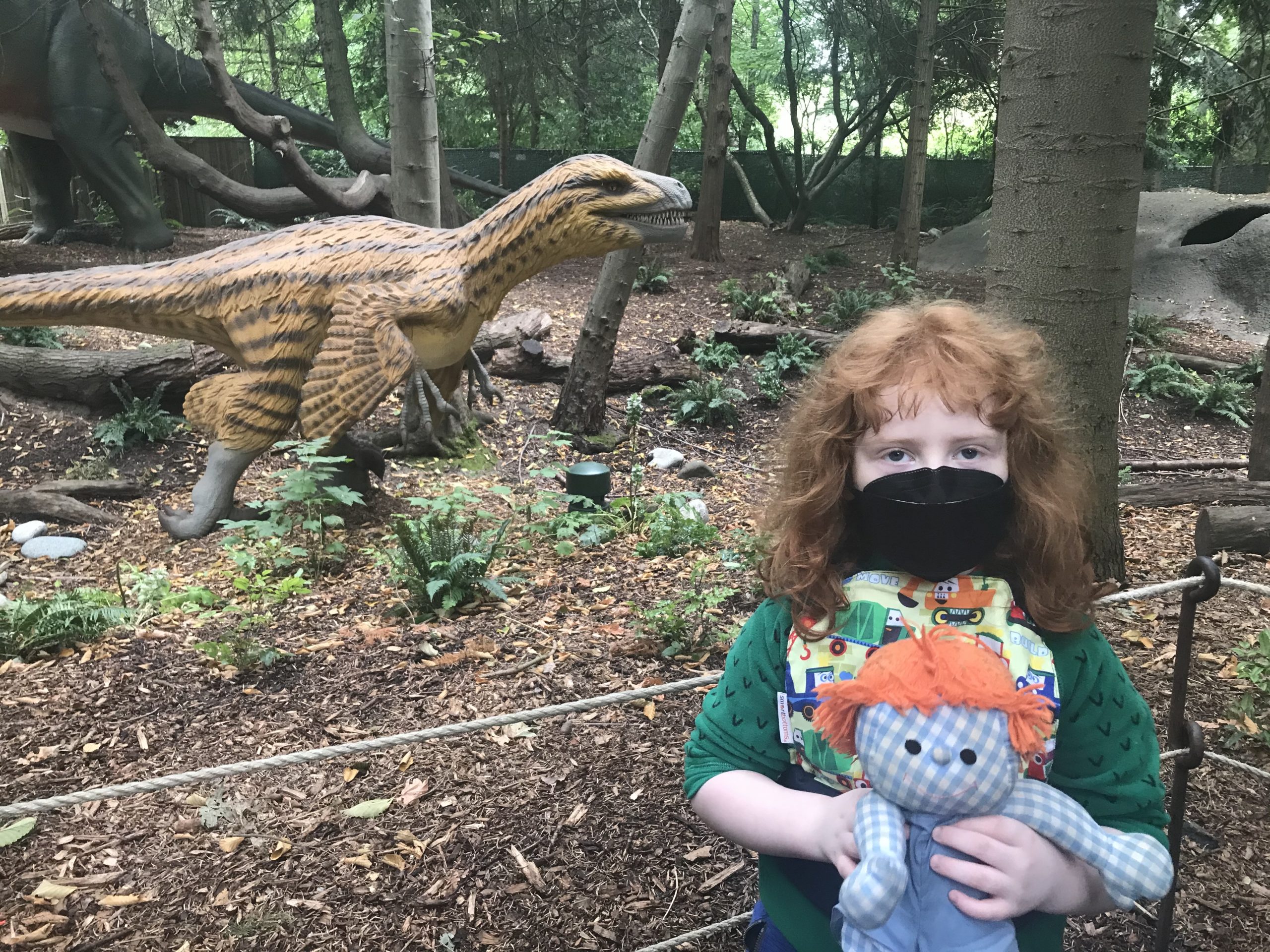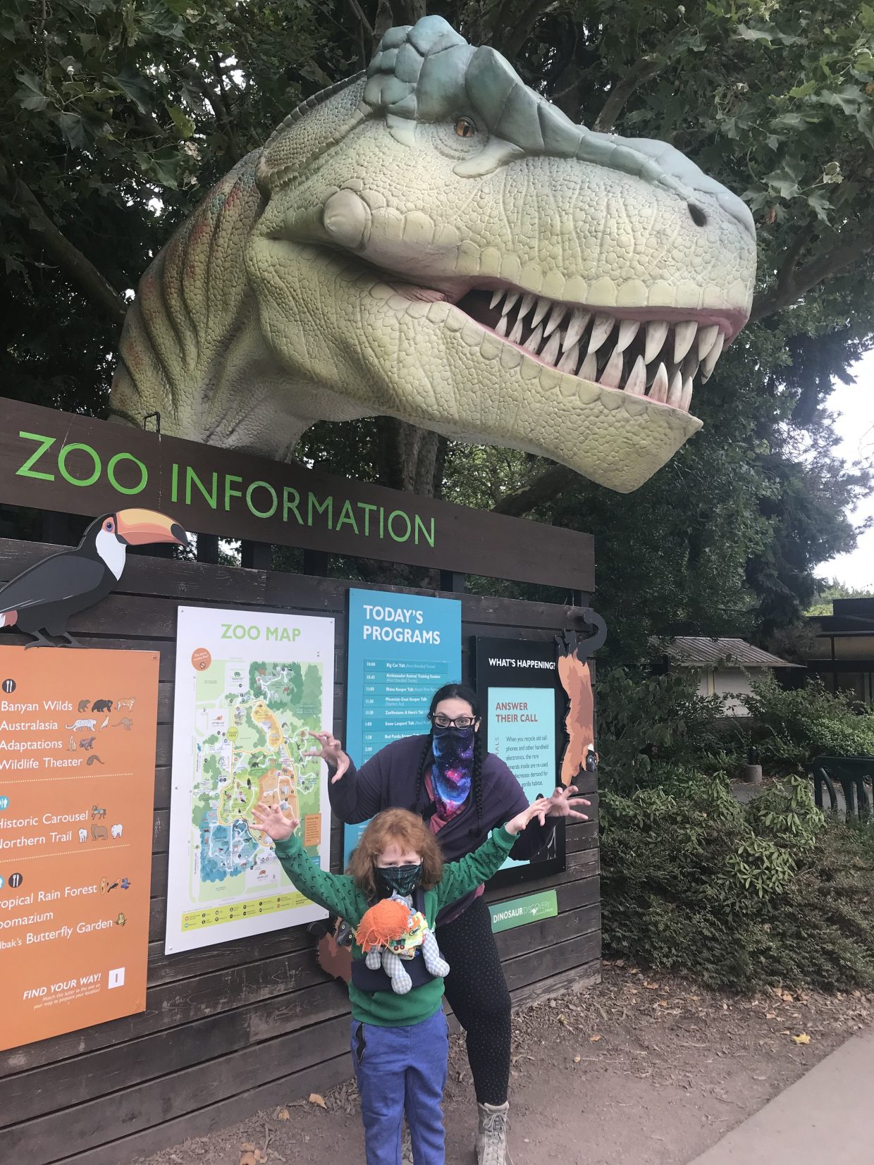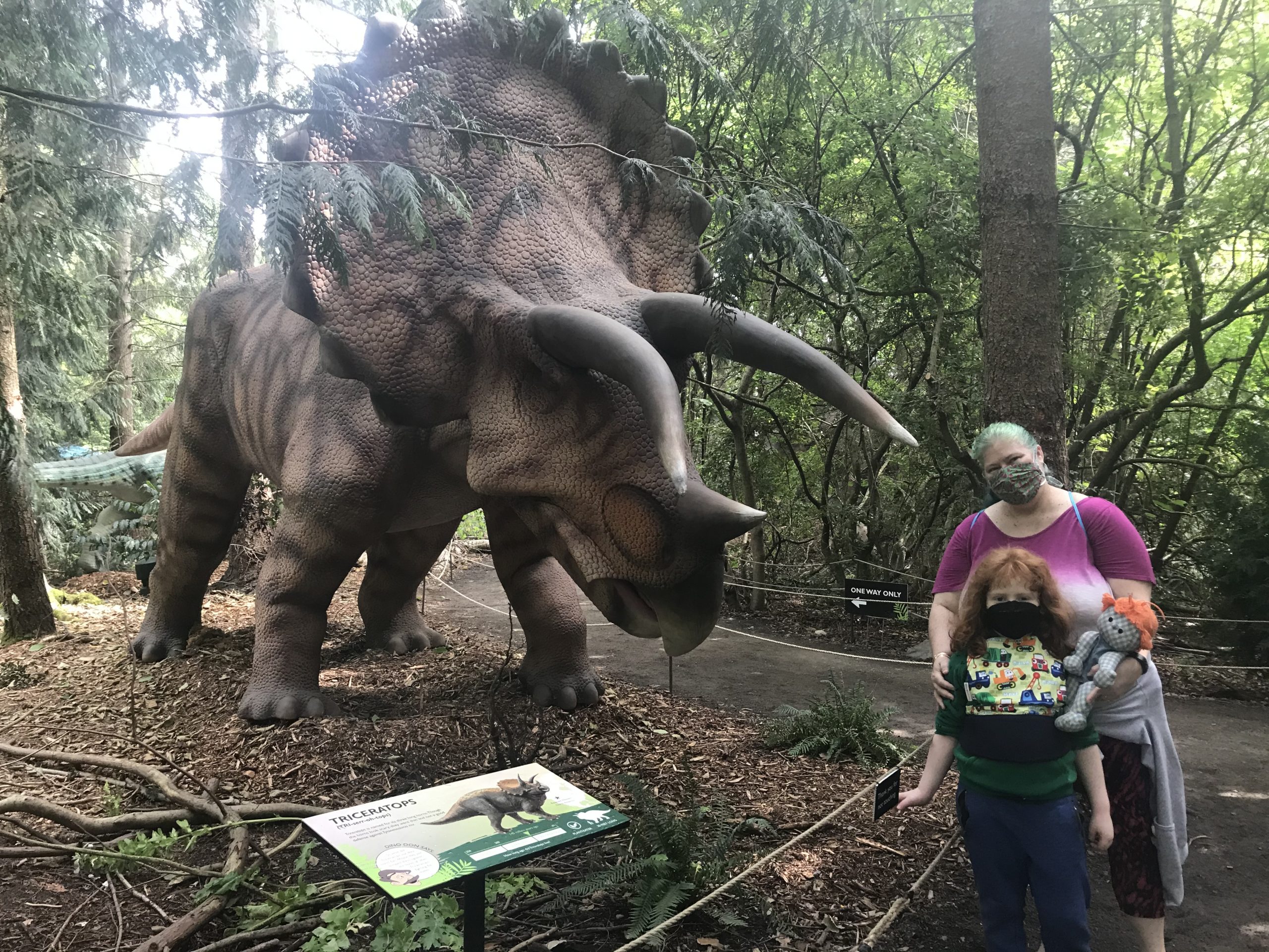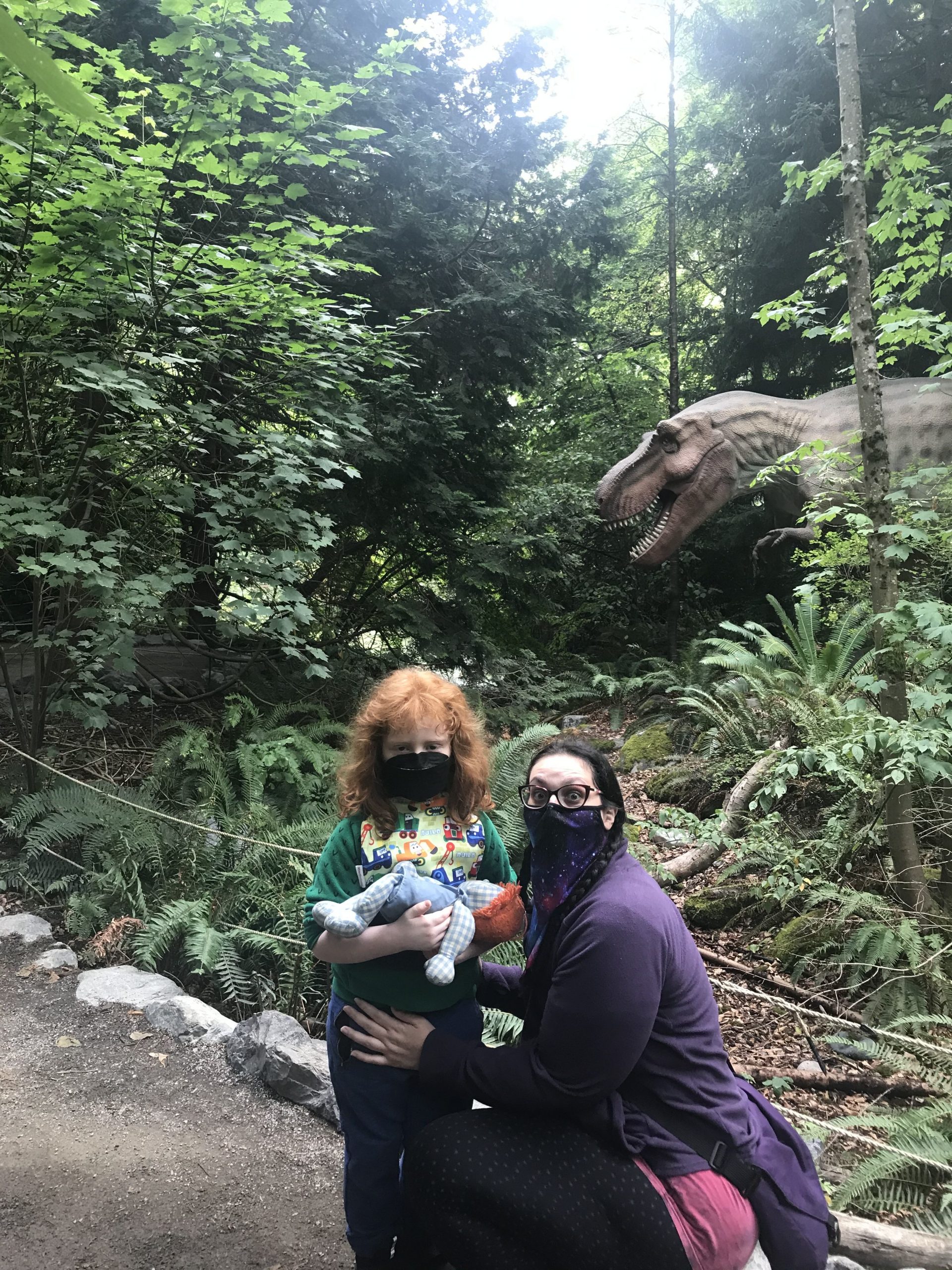 Mom, Alfie, and I met up with Auntie Hannah at the Woodland Park Zoo today and there were DINOSAURS! I did NOT expect that!