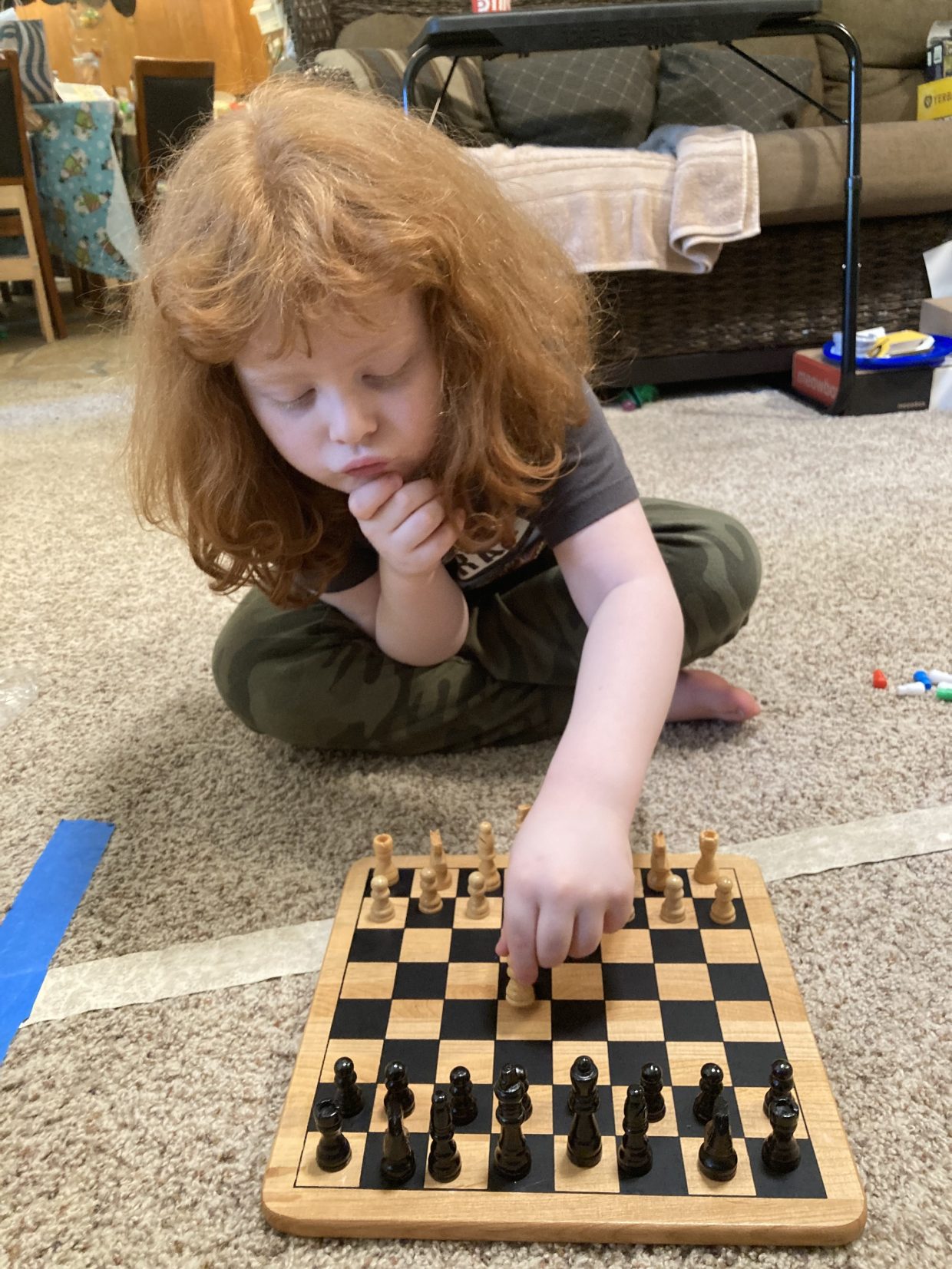 D-Dad taught me how to play chess today. He says I’m gonna need lots of practice but that I did pretty good for my first day.