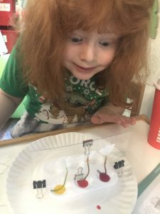 Today we learned about capillary action by changing the color of flowers by adding color to the stems. It was pretty fun to watch!