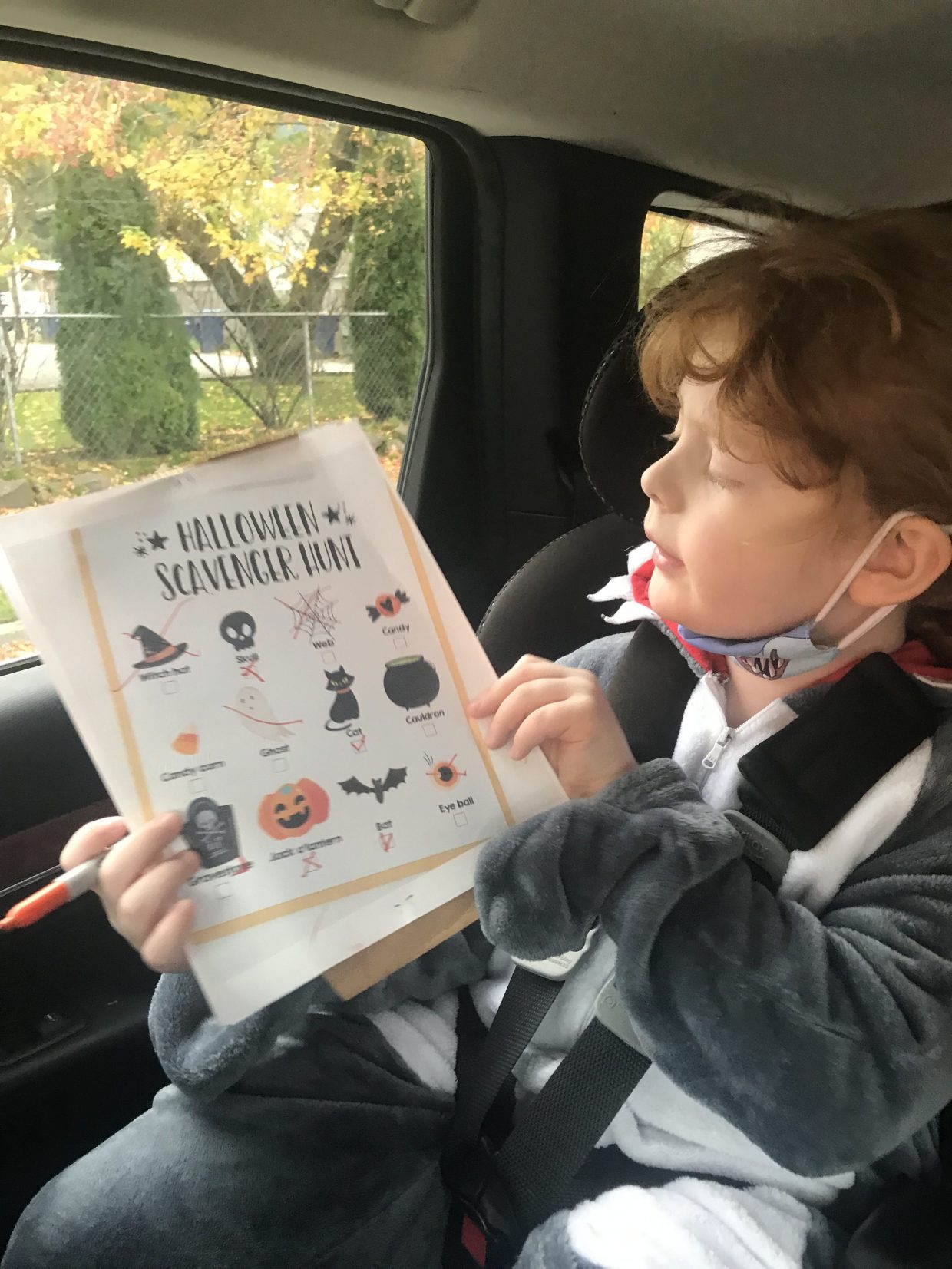 On our way to swimming today, Mom and I drove around and looked for Halloween decorations.