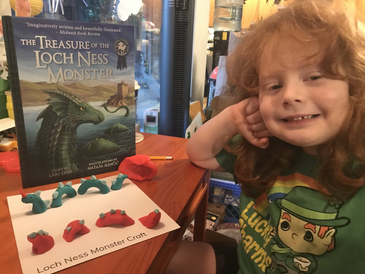 After class, Mom and I made our own depictions of Nessie out of PlayDoh. Mine is the red one, of course! And do you see her cave in the background?