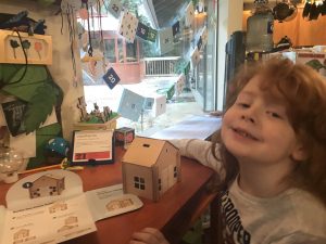 Then I have an activity village from KiwiCo where I get to build a different part of the village every day! This is part of my school work.