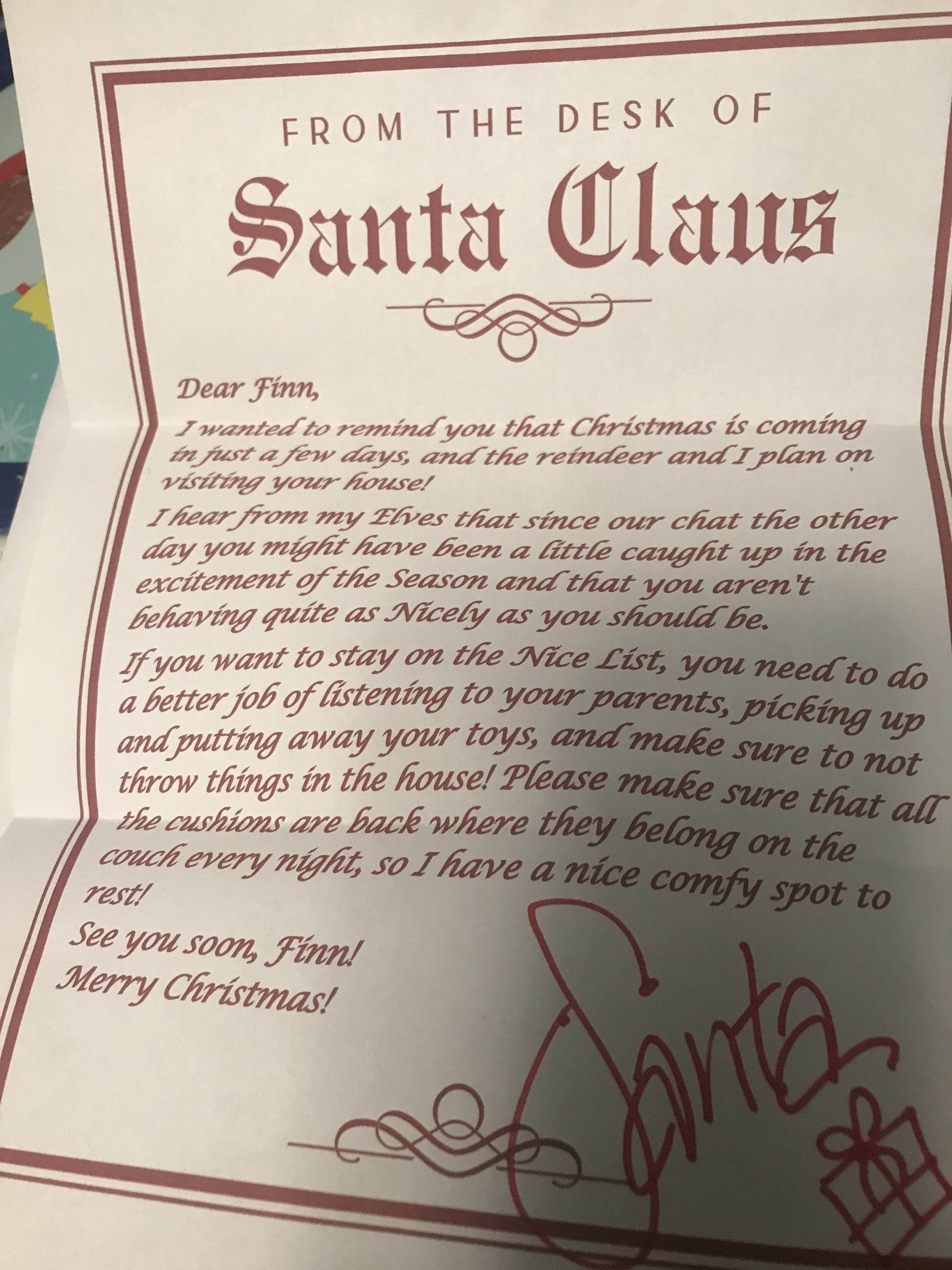He’s right. I’ve been so excited about it being almost Christmas that I haven’t been listening as well as I should. Guess I’d better buckle down to make sure I stay on the Nice List!