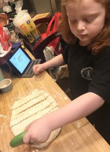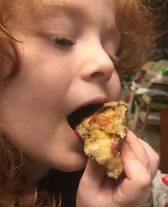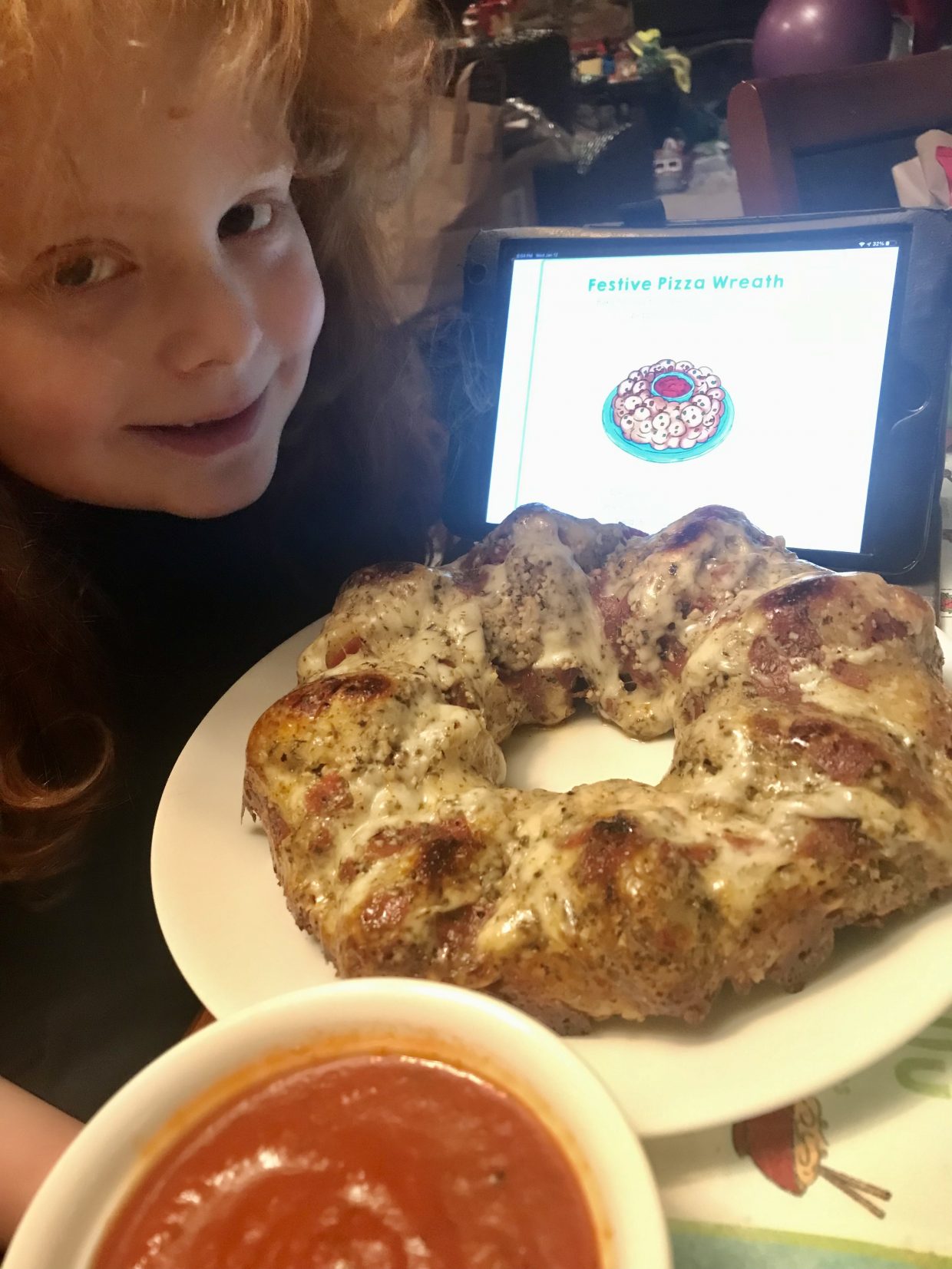 This Festive Pizza Wreath is made with lots of pepperoni and lots and lots of cheese! We had to make a smaller one for D-Dad with no cheese in it.