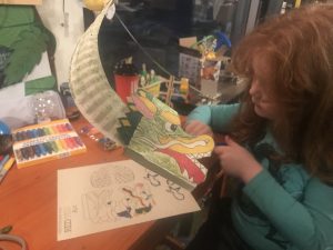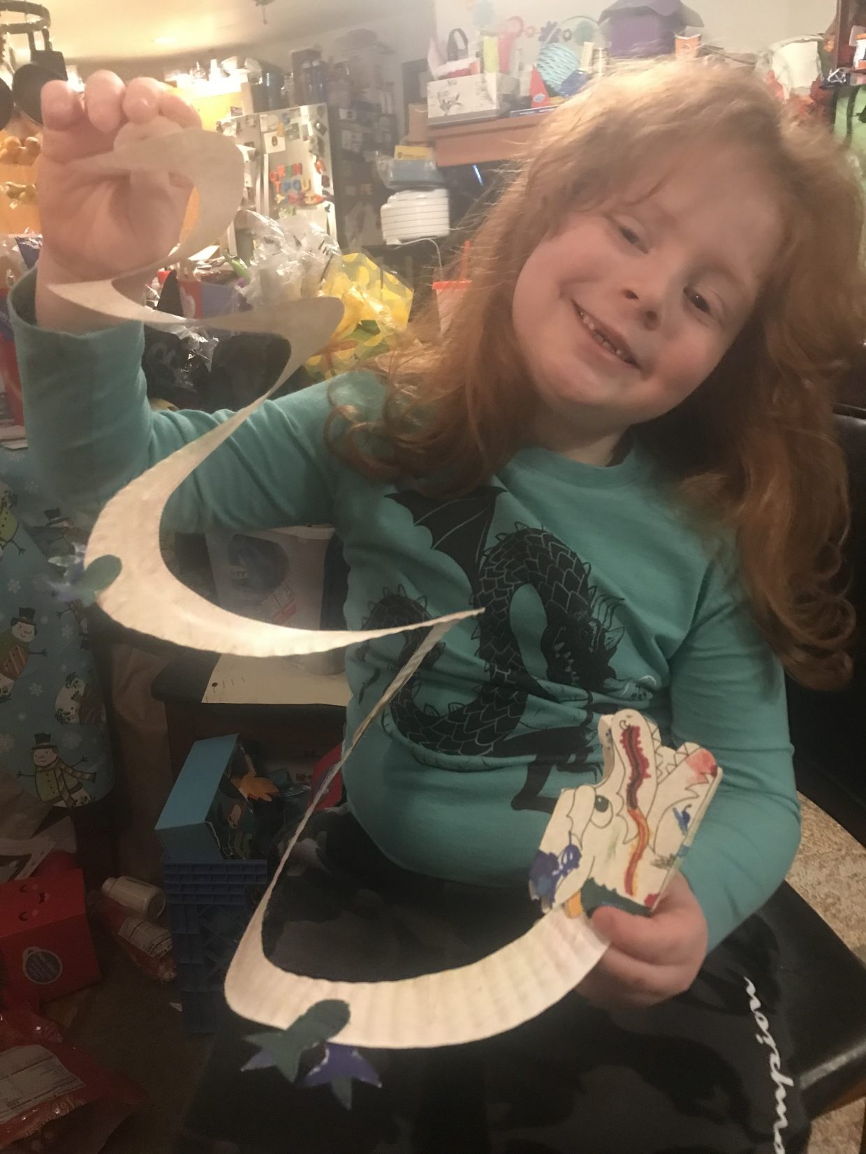 We made these fun dragon spinners that we’ll hang and leave up for Chinese New Year too!