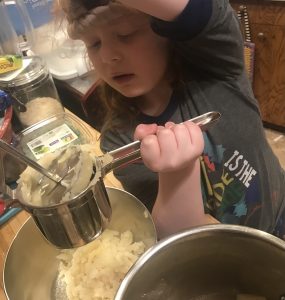 We used something called a “ricer” to smoosh the potato. Seems like a funny name, don’t you think?