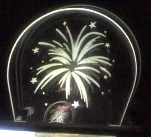 And we made a fireworks “show” by passing colored light (from the same LED) through plates of plastic. The etched sections diffused (spread out) the light waves and made it look like fireworks going off!