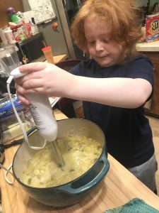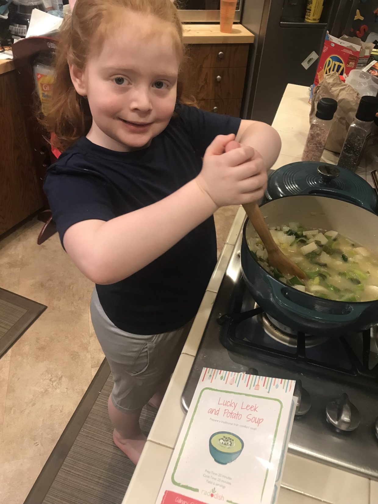 See, it works because it’s a gas stove, so there really is fire under my “cauldron” of Lucky Leek Soup!