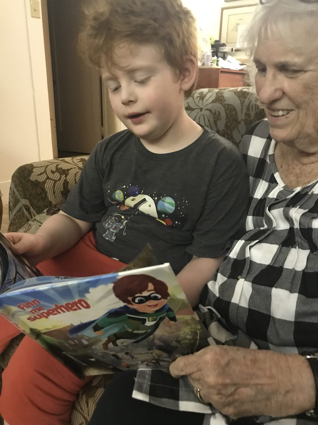 Reading to Grammie about what it’s like to be Finn the Superhero